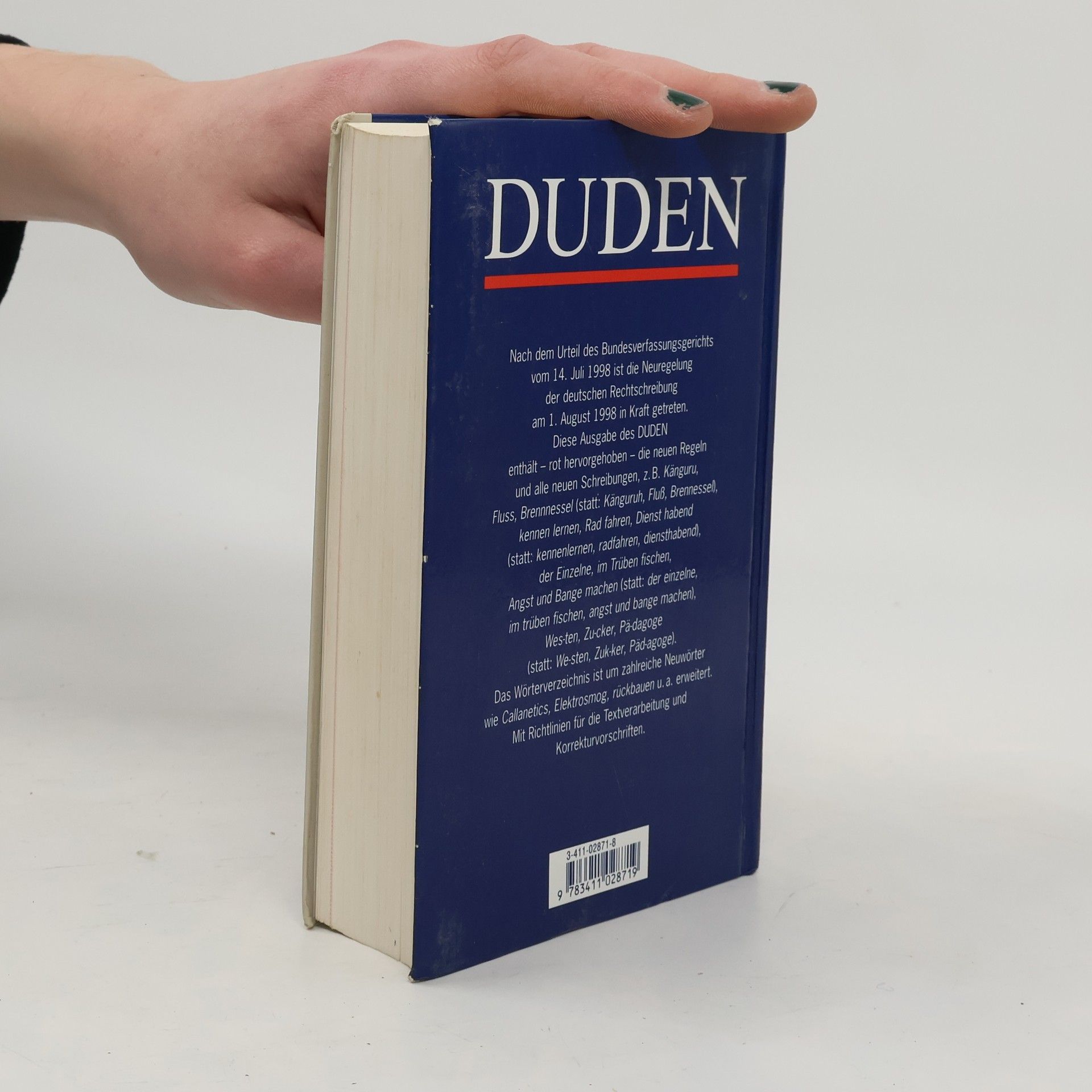Der neue Rechtschreibduden enthält alle neuen Regeln und alle neuen Schreibungen. Sie sind rot hervorgehoben. So wird auf den ersten Blick deutlich, wo sich etwas geändert hat und wo die bisherigen Schreibungen unverändert bleiben.§Neben dem bewährten Richtlinienteil und dem Wörterverzeichnis mit mehr als 115.000 Stichwörtern und über 500.000 ergänzenden Angaben zu Silbentrennung, Aussprache, Grammatik, Herkunft und Bedeutung der Wörter enthält der Duden auch den Text des neuen amtlichen Regelwerks.