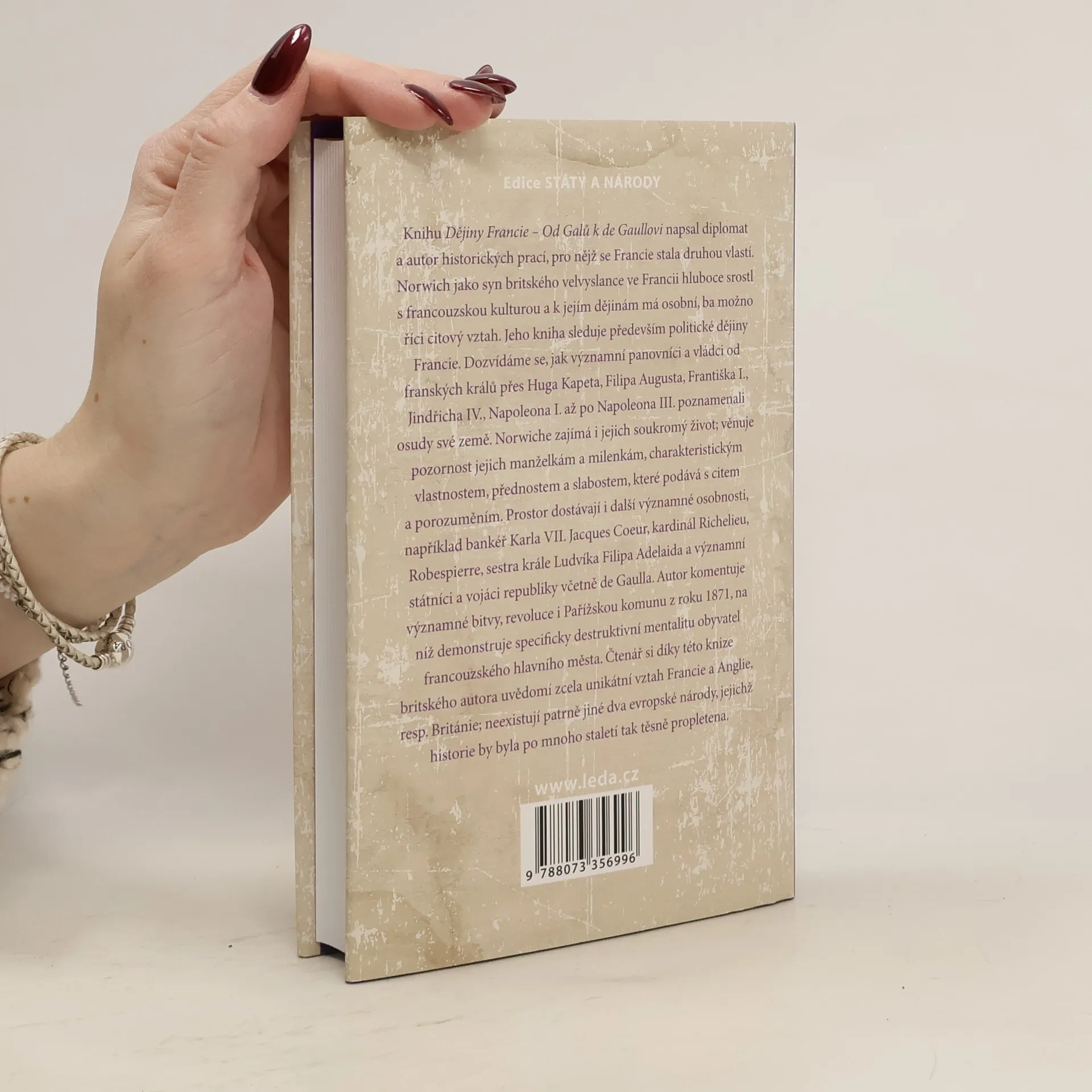 Knihu Dějiny Francie – Od Galů k de Gaullovi napsal diplomat a autor historických prací, pro nějž se Francie stala druhou vlastí. Norwich jako syn britského velvyslance ve Francii hluboce srostl s francouzskou kulturou a k jejím dějinám má osobní, ba možno říci citový vztah. Jeho kniha sleduje především politické dějiny Francie. Dozvídáme se, jak významní panovníci a vládci od franských králů přes Hugo Kapeta, Filipa Augusta, Františka I., Jindřicha IV., Napoleona I. až po Napoleona III. poznamenali osudy své země. Norwiche zajímá i jejich soukromý život; věnuje pozornost jejich manželkám a milenkám, charakteristickým vlastnostem, přednostem a slabostem, které podává s citem a porozuměním. Prostor dostávají i další významné osobnosti jako jsou bankéř Karla VII. Jacques Coeur, kardinál Richelieu, Robespierre, sestra krále Ludvíka Filipa Adelaida a významní státníci a vojáci republiky včetně de Gaulla. Autor komentuje významné bitvy, revoluce i pařížskou Komunu z roku 1871, na níž demonstruje specificky destruktivní mentalitu obyvatel francouzského hlavního města. Čtenář si díky této knize britského autora uvědomí zcela unikátní vztah Francie a Anglie, resp. Británie; neexistují patrně jiné dva evropské národy, jejichž historie by byla po mnoho staletí tak těsně propletena.