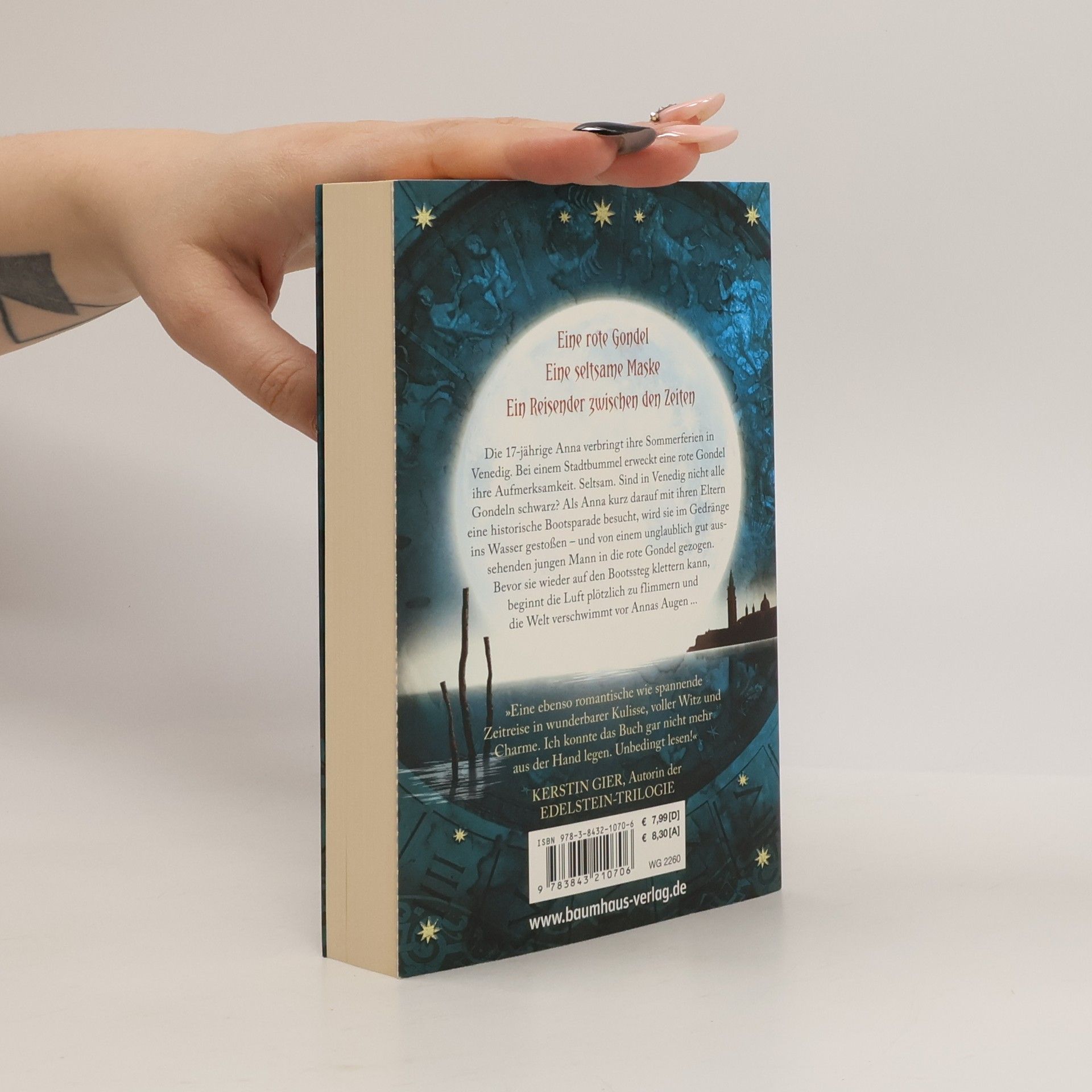 Die 17-jährige Anna verbringt ihre Sommerferien in Venedig. Bei einem Stadtbummel erweckt eine rote Gondel ihre Aufmerksamkeit. Seltsam. Sind in Venedig nicht alle Gondeln schwarz? Als Anna kurz darauf mit ihren Eltern eine historische Bootsparade besucht, wird sie im Gedränge ins Wasser gestoßen - und von einem unglaublich gut aussehenden jungen Mann in die rote Gondel gezogen. Bevor sie wieder auf den Bootssteg klettern kann, beginnt die Luft plötzlich zu flimmern und die Welt verschwimmt vor Annas Augen ...