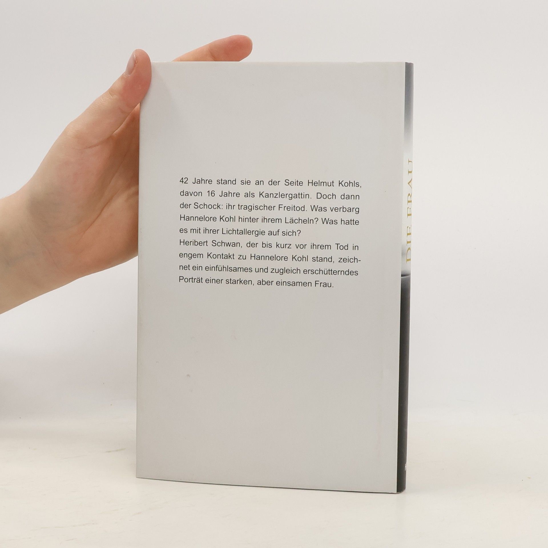Was verbarg Hannelore Kohl hinter ihrem versteinerten Lächeln? Was hatte es mit ihrer Lichtallergie auf sich? 10 Jahre nach ihrem tragischen Tod deckt Heribert Schwan auf, wie Hannelore Kohl lebte und wie sie starb. Er stand bis 2 Tage vor ihrem Selbstmord in engem Kontakt zu Hannelore Kohl und führte seither ausführliche Gespräche mit den engsten Freundinnen und Vertrauten. Aus dieser Fülle an Insider-Wissen zeichnet er das einfühlsame, aber auch erschütternde Porträt einer einsamen Frau. Hannelore Kohl führte eine Ehe mit klassischer Rollenverteilung: Er machte Karriere, und sie kümmerte sich um die Kinder. Doch sein Leben als Politiker forderte mehr von ihr – ein Leben im Rampenlicht. Zögernd ließ sie sich darauf ein, doch während ihr Mann politisch immer einflussreicher wurde, versteinerte ihr Lächeln zur Maske. Heribert Schwan war der Erste, dem es gelang, Hannelore Kohl 1985 für ein Fernsehporträt zu gewinnen, das damals großes Aufsehen erregte. Seitdem stand er in regelmäßigem Kontakt mit ihr. Er erlebte aus der Nähe das ganze Drama ihrer Krankheit mit. Als sie zuletzt das Haus tagsüber nicht mehr verlassen konnte, begleitete er sie bei langen nächtlichen Waldspaziergängen. Sein kritisches Urteil über die familiäre Situation der Kohls: In 42 Ehejahren mit dem Machtmenschen Kohl wurde aus Hannelore Kohl, der Frau an seiner Seite, die Frau in seinem Schatten.