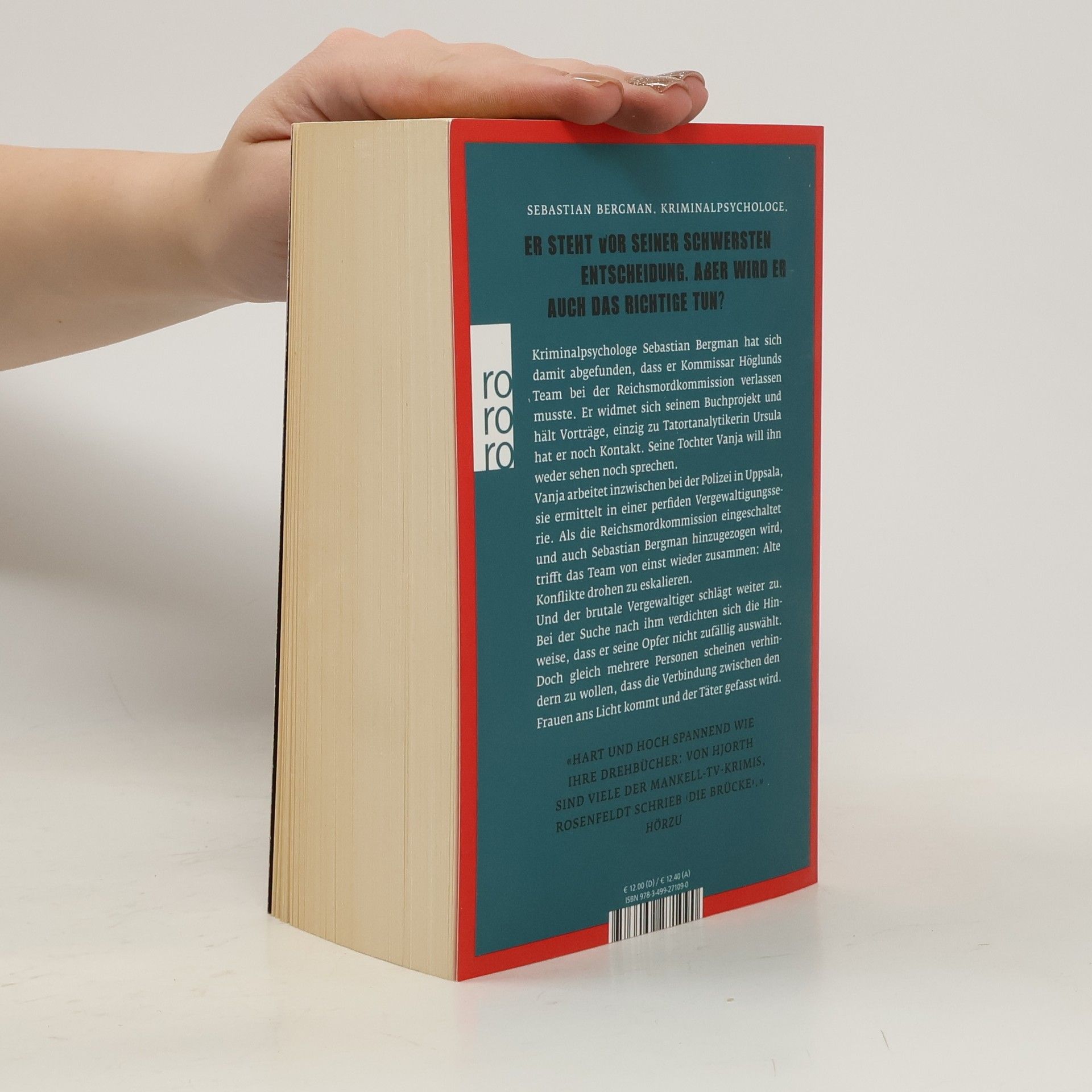 Der Nummer-1-Bestseller aus SchwedenKriminalpsychologe Sebastian Bergman hat sich damit abgefunden, dass er Kommissar Höglunds Team bei der Reichsmordkommission verlassen musste. Er widmet sich seinem Buchprojekt und hält Vorträge, einzig zu Tatortanalytikerin Ursula hat er noch Kontakt. Seine Tochter Vanja will ihn weder sehen noch sprechen. Vanja arbeitet inzwischen bei der Polizei in Uppsala, sie ermittelt in einer perfiden Vergewaltigungsserie. Als die Reichsmordkommission eingeschaltet und auch Sebastian Bergman hinzugezogen wird, trifft das Team von einst wieder zusammen: Alte Konflikte drohen zu eskalieren. Und der brutale Vergewaltiger schlägt weiter zu. Bei der Suche nach ihm verdichten sich die Hinweise, dass er seine Opfer nicht zufällig auswählt. Doch gleich mehrere Personen scheinen verhindern zu wollen, dass die Verbindung zwischen den Frauen ans Licht kommt und der Täter gefasst wird.
