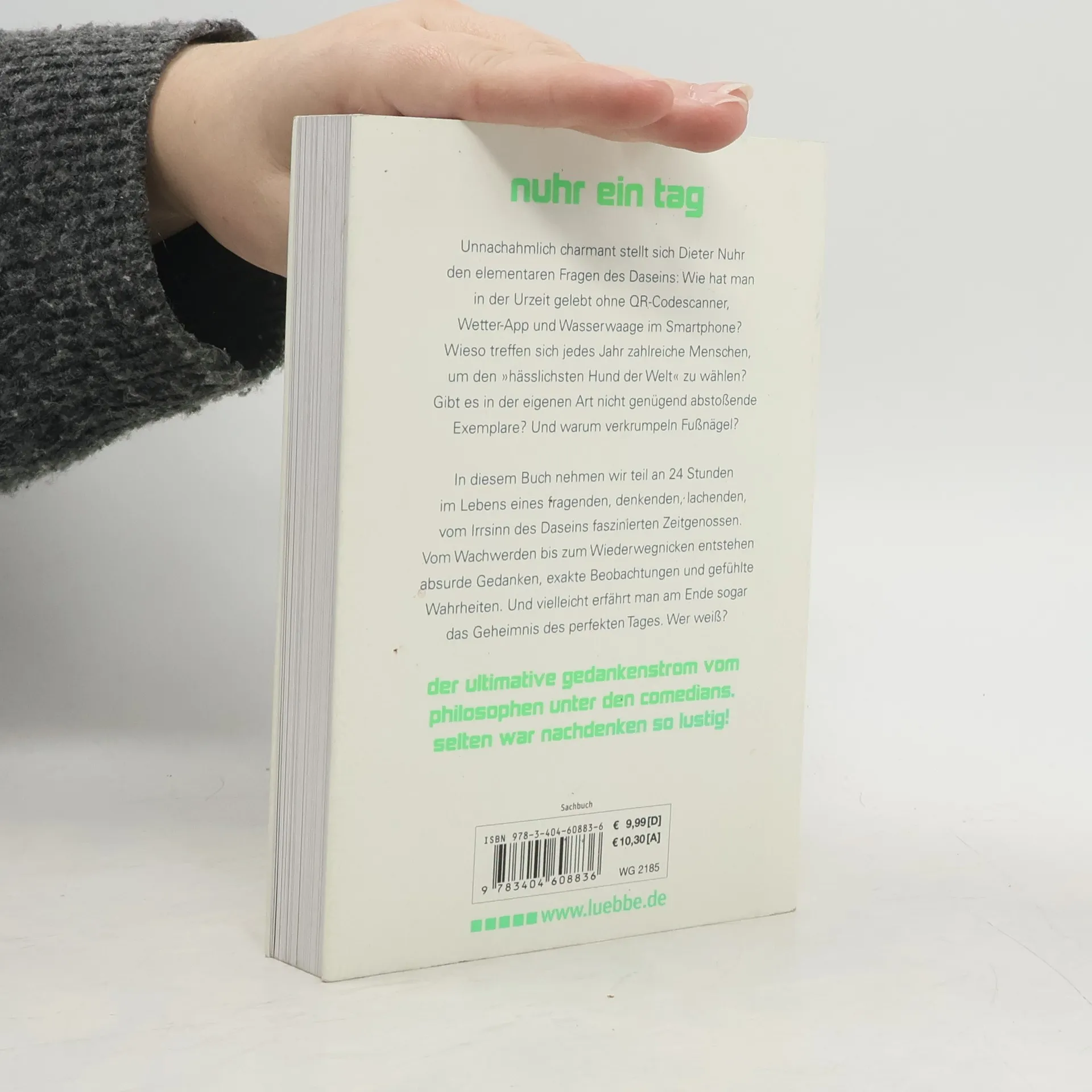 Unnachahmlich charmant stellt sich Dieter Nuhr den elementaren Fragen des Daseins: Wie hat man in der Urzeit gelebt ohne QR-Codescanner, Wetter-App und Wasserwaage im Smartphone? Wieso treffen sich jedes Jahr zahlreiche Menschen, um den „hässlichsten Hund der Welt“ zu wählen? Gibt es in der eigenen Art nicht genügend abstoßende Exemplare? Und warum verkrumpeln Fußnägel? In diesem Buch nehmen wir teil an 24 Stunden im Leben eines fragenden, denkenden, lachenden, vom Irrsinn des Daseins faszinierten Zeitgenossen. Vom Wachwerden bis zum Wiederwegnicken entstehen absurde Gedanken, exakte Beobachtungen und gefühlte Wahrheiten. Und vielleicht erfährt man am Ende sogar das Geheimnis des perfekten Tages. Wer weiß?