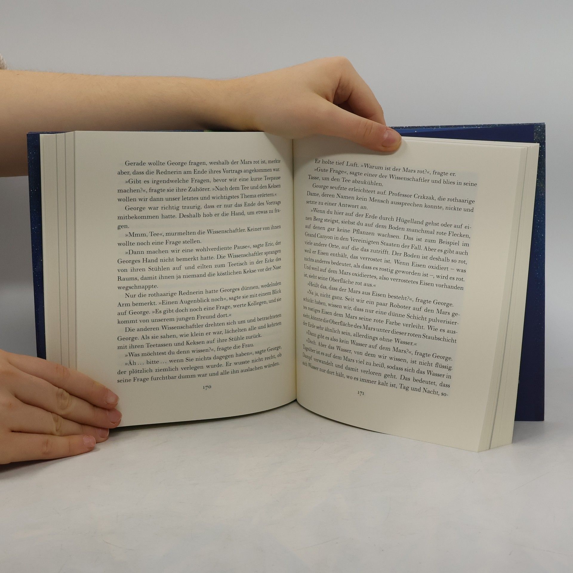 Stephen Hawking erklärt die Geheimnisse des Universums. Eine rasante Abenteuerreise durch Zeit und Raum Als George den Wissenschaftler Eric und dessen Tochter Annie kennenlernt, kommt er aus dem Staunen nicht mehr heraus: Die beiden besitzen einen superintelligenten Computer namens Cosmos, der es vermag, die Tür ins Universum zu öffnen! Mit Cosmos' Hilfe bereisen Eric, Annie und George das All, reiten auf Kometen, umkreisen den Saturn und beobachten ein Schwarzes Loch - bis der skrupellose Wissenschaftler Reeper Wind von ihrem Geheimnis und Cosmos' Fähigkeiten bekommt. Ein fulminantes Abenteuer im Universum und zugleich ein Buch, das in die aufregende Welt der Astronomie entführt. Was Sonnenflecken sind oder warum der Saturn Ringe hat - spannend vermittelt Georges Weltraumreise faszinierendes astronomisches Wissen. Sachinfos treten ergänzend hinzu und atemberaubende Fotostrecken lassen über Himmelsphänomene staunen. Astronomie, die jedes Kind versteht. * Das erste Kinderbuch vom Autor des Weltbestsellers 'Eine kurze Geschichte der Zeit' * Eine unterhaltsame Einführung in die spannendsten Momente der Astrophysik - für Kinder ebenso faszinierend wie für Erwachsene * Infokästen erklären die wichtigsten astronomischen Begriffe * Atemberaubende Fotos und zahlreiche Sachillustrationen geben faszinierende Einblicke