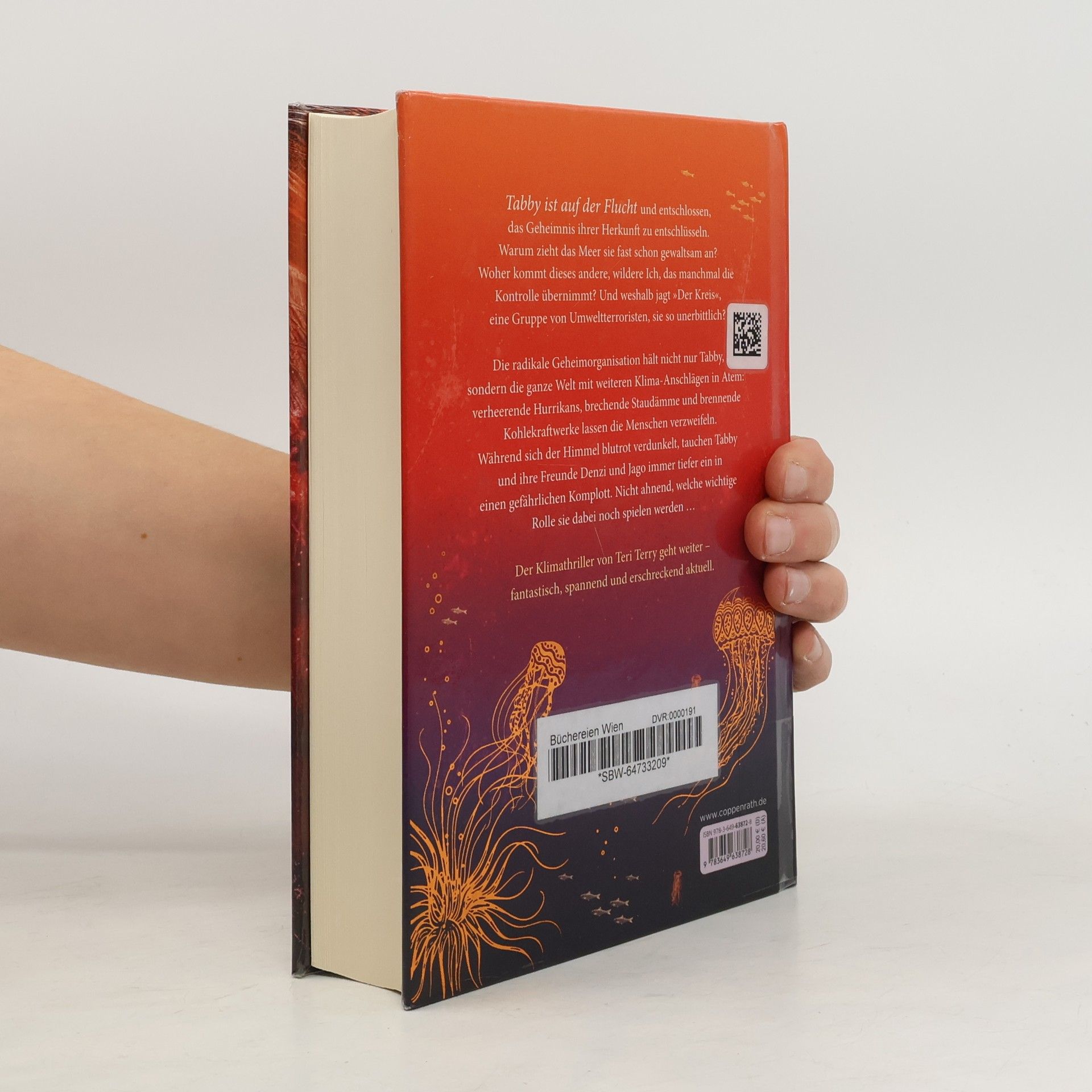 Tabby ist auf der Flucht und entschlossen, das Geheimnis ihrer Herkunft zu entschlüsseln. Warum zieht das Meer sie fast schon gewaltsam an? Woher kommt dieses andere, wildere Ich, das manchmal die Kontrolle übernimmt? Und weshalb jagt “Der Kreis”, eine Gruppe von Umweltterroristen, sie so unerbittlich? Die radikale Geheimorganisation hält nicht nur Tabby, sondern die ganze Welt mit weiteren Klima-Anschlägen in Atem: verheerende Hurrikans, brechende Staudämme und brennende Kohlekraftwerke lassen die Menschen verzweifeln. Während sich der Himmel blutrot verdunkelt, tauchen Tabby und ihre Freunde Denzi und Jago immer tiefer ein in einen gefährlichen Komplott. Nicht ahnend, welche wichtige Rolle sie dabei noch spielen werden …