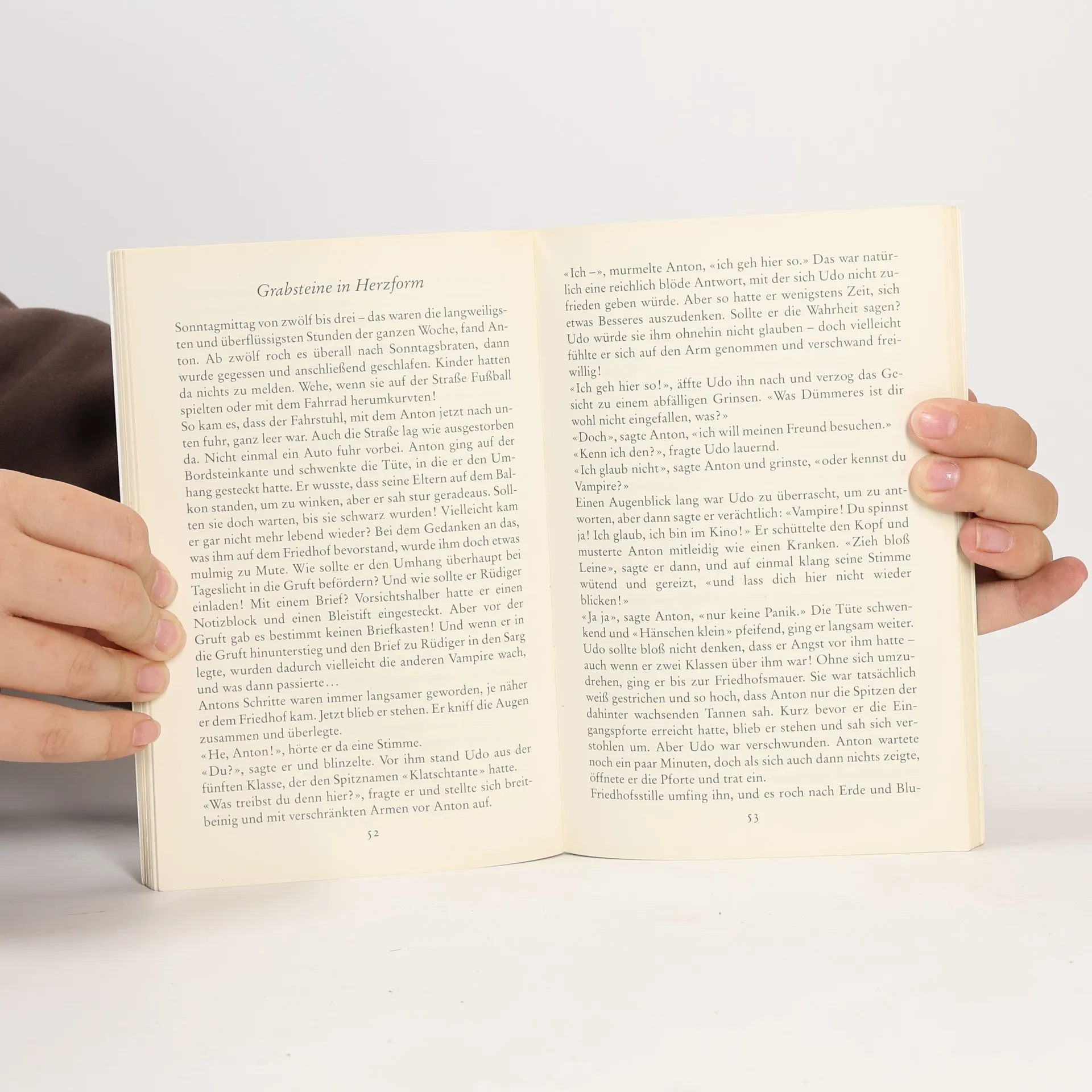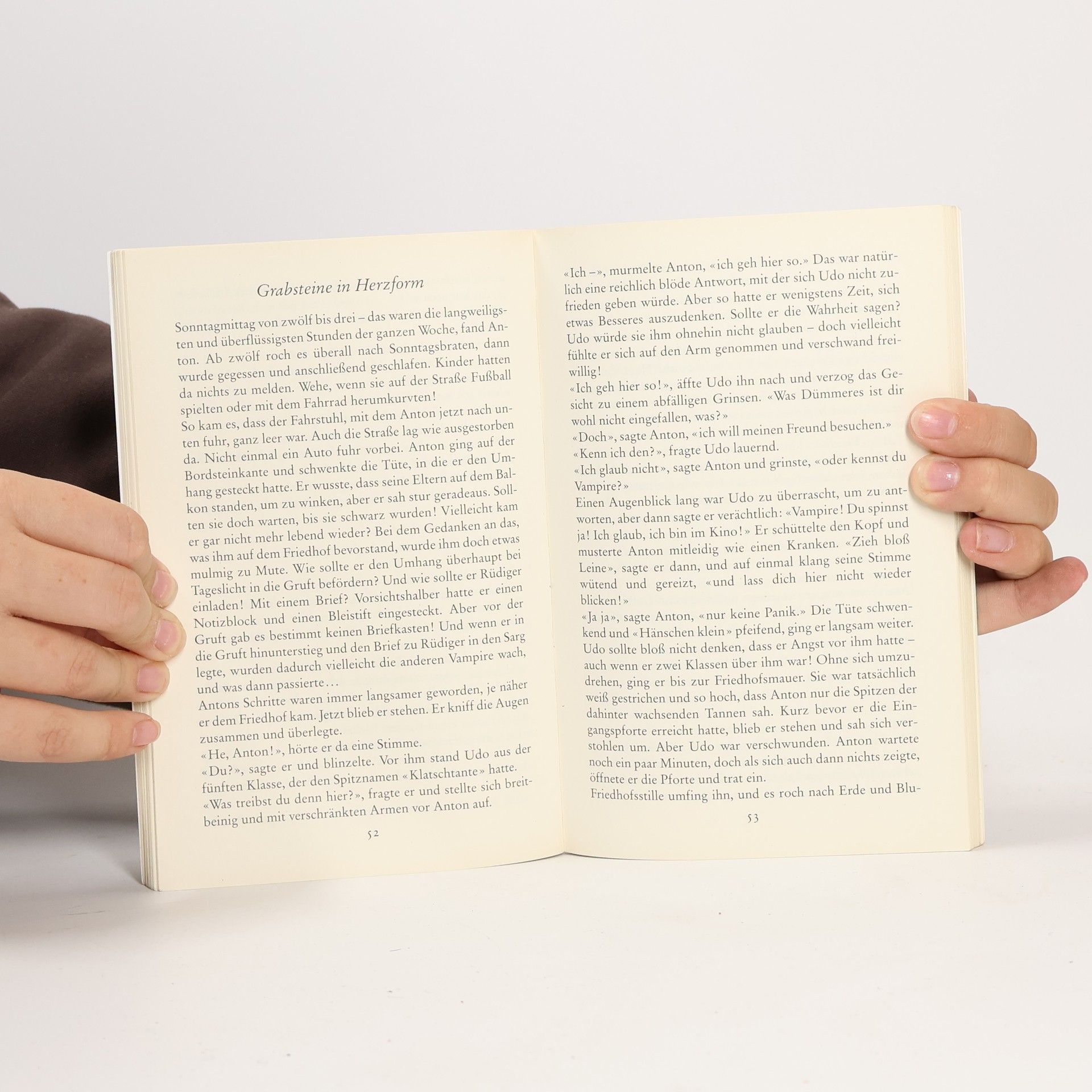 Anton liest für sein Leben gern Gruselgeschichten –– vor allem über Vampire. Von einem Vampir wie Rüdiger aber hat Anton noch nie gehört. Ein richtig netter Vampir ist das. Wenn bloß seine Eltern nicht so neugierig wären. Wie soll Anton ihnen erklären, warum sein neuer Freund nie den schäbigen schwarzen Umhang ablegt, immerzu eine Hand vor den Mund hält und dazu noch so merkwürdig riecht?Die berühmte Serie von Angela Sommer-Bodenburg mit Zeichnungen von Amelie Glienke.