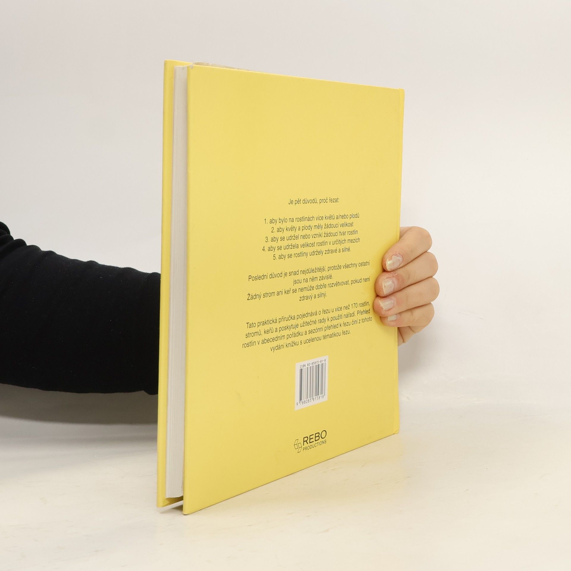 V knize se lze dočíst o řezu více než 170 rostlin, stromů, keřů a poskytuje užitečné rady k použití nářadí. Velký počet názorných obrázků doplňuje uvedený text. Obsah knihy je zaměřen na pět důvodů, proč řezat : 1. aby bylo na rostlinách více květů a/nebo plodů 2. aby květy a plody měly žádoucí velikost 3. aby se udržel nebo vznikl žádoucí tvar rostlin 4. aby se udržela velikost rostlin v určitých mezích 5. aby se rostliny udržely zdravé a silné. Poslední důvod je snad nejdůležitější, protože všechny ostatní jsou na něm závislé. Žádný strom ani keř se nemůže dobře rozvětvovat, pokud není zdravý a silný. V závěru knihy lze také nalézt přehled rostlin v abecedním pořádku a sezonní přehled k řezu, a tak obě tyto příloha činí z tohoto vydání knížku s ucelenou tématikou řezu.