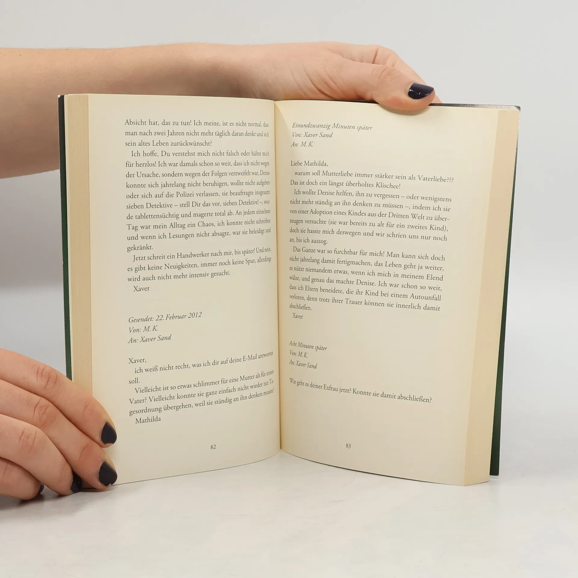 Mathildas große Liebe, Xaver, hat sie verlassen. Daraufhin erleidet die junge Frau einen Nervenzusammenbruch. Sechzehn Jahre später scheint sie endlich einen Platz im Leben gefunden zu haben: Mathilda ist Deutschlehrerin in einer anderen Stadt. Da taucht Xaver, inzwischen gefeierter Jugendbuchautor, plötzlich wieder auf. Die beiden rekapitulieren ihre gescheiterte Beziehung. Die Geburt von Xavers Sohn nur wenige Monate nach der Trennung und dessen Entführung werden zum Angelpunkt ihrer Begegnung. Ein raffiniertes und fesselndes Spiel um Liebe, Rache Schuld nimmt seinen Lauf …