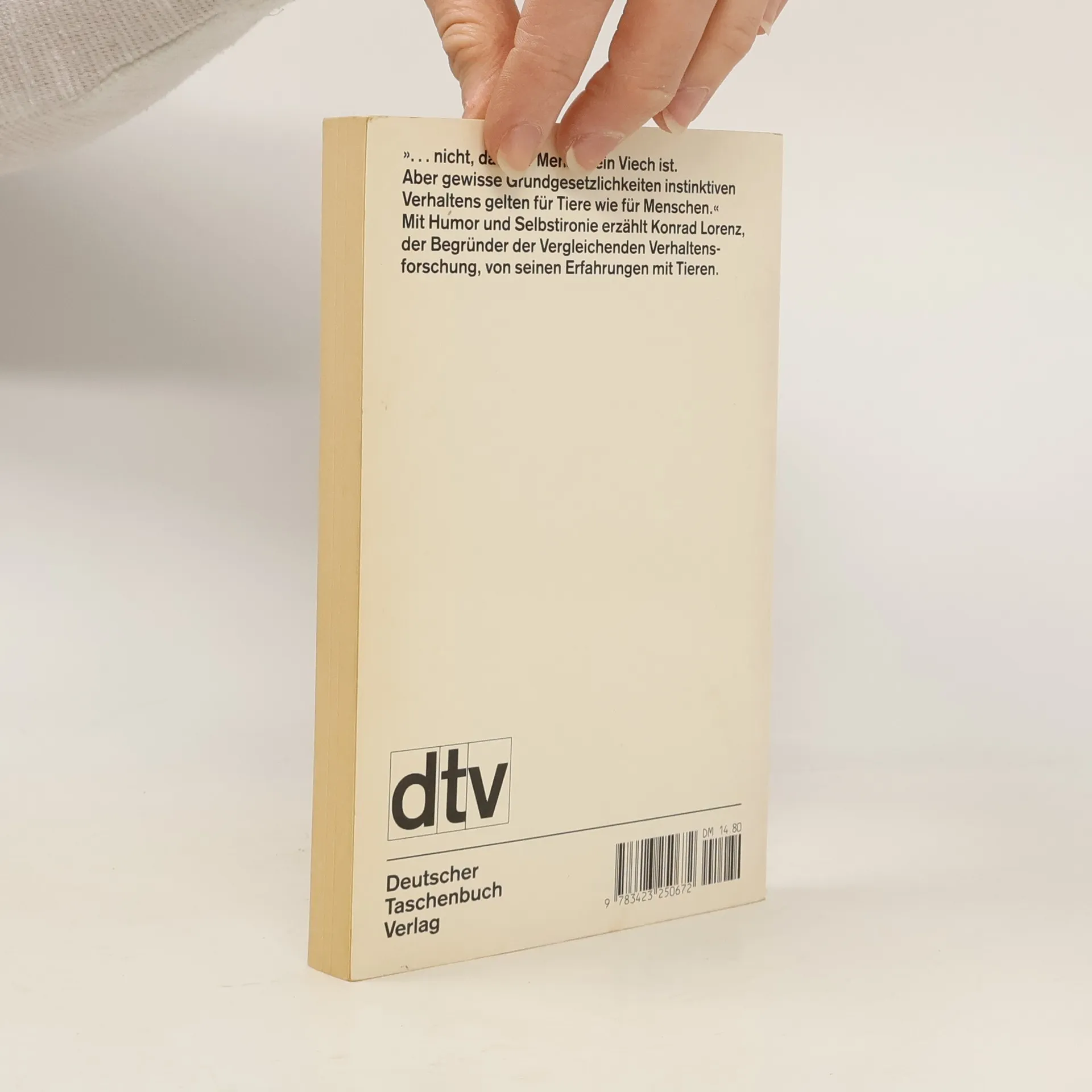 Konrad Lorenz erzählt mit der liebenden Zuneigung des Tierfreundes von den Lebensgewohnheiten seiner zwei- und vierbeinigen Gefährten und stellt fest: »...nicht, dass der Mensch ein Viech ist. Aber gewisse Grundgesetzlichkeiten instinktiven Verhaltens gelten für Tiere wie für Menschen.«