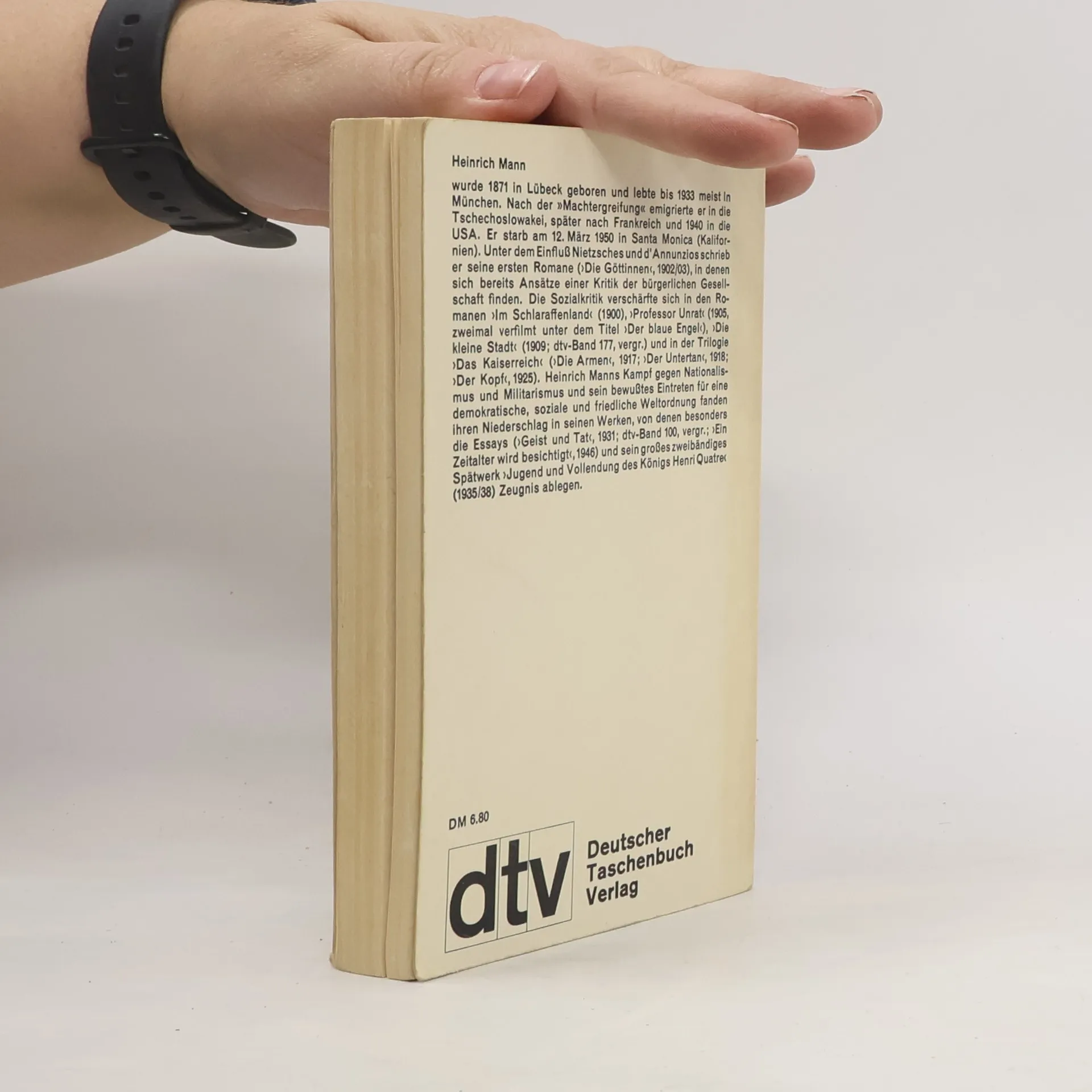 Heinrich Mann, 1871 geboren, veröffentlichte 1894 „In einer Familie“. Es folgten „Im Schlaraffenland“, die Trilogie „Die Göttinnen“ und 1905 schließlich sein „Professor Unrat“, dessen Verfilmung mit Marlene Dietrich unter dem Titel „Der blaue Engel“ Heinrich Mann weltberühmt machte. Im Februar 1933 erzwangen die Nationalsozialisten Heinrich Manns Ausschluss aus der Preußsichen Akademie der Künste. Er emigrierte über Paris und Nizza, Spanien und Portugal in die USA. 1949 nahm er die Berufung zum Präsidenten der neu gegründeteten Deutschen Akademie der Künste in Ost-Berlin an, starb jedoch noch 1950 in Kalifornien.