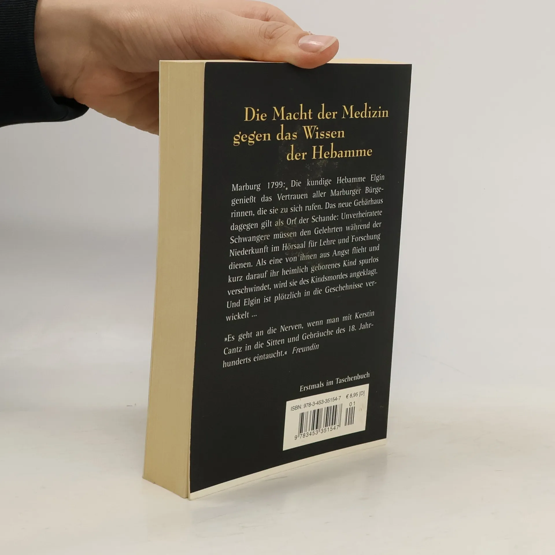 Die Macht der Medizin gegen das geheime Wissen der Hebamme Marburg, 1799: Seit Ärzte die Geburtshilfe zum akademischen Fach erheben, finden Entbindungen im Gebärhaus statt – unter menschenunwürdigen Bedingungen, wie die Hebammenschülerin Gesa bald herausfindet. Deshalb vertrauen sich die Marburgerinnen lieber der geheimnisvollen Elgin an, auch wenn die Obrigkeiten das Wirken der erfahrenen Hebamme als Pfuscherei abtun. Als die selbstbewusste Elgin sich weigert, mit dem Gebärhaus zusammenzuarbeiten, kommt es zu einem folgenschweren Machtkampf … Ein spannungsgeladener historischer Roman mit kriminalistischen Elementen.