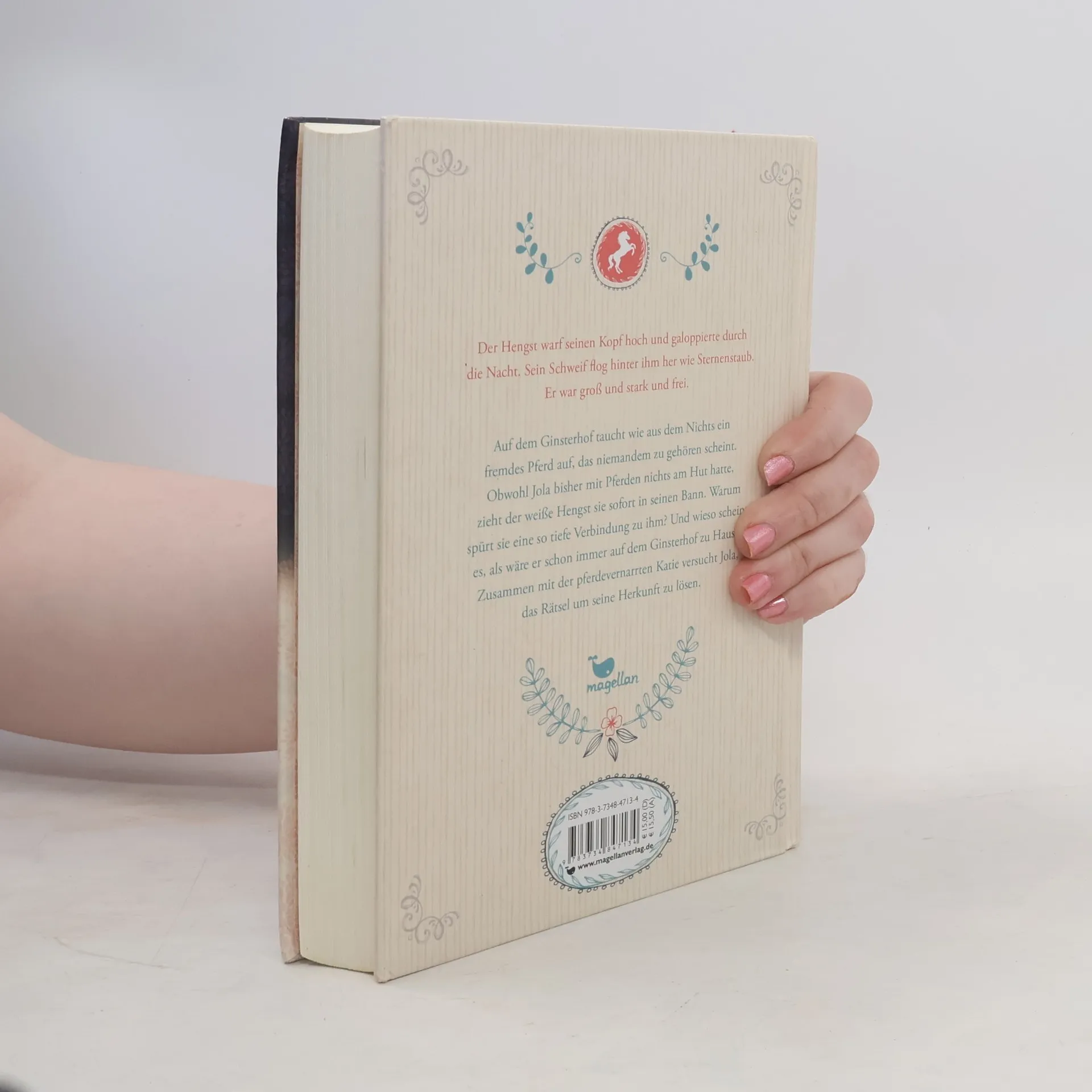 Bayern statt Neuseeland, Schule statt Fernunterricht, Ginsterhof statt Abenteuer: Das ist Jolas neues Leben. Doch schnell merkt sie, dass es ihr auch auf dem idyllischen Reiterhof nicht langweilig werden wird. Denn schon in ihrer ersten Nacht im neuen Zuhause taucht ein geheimnisvolles Pferd auf. Obwohl Jola bisher mit Pferden nichts am Hut hatte, zieht der weiße Hengst sie sofort in seinen Bann. Warum spürt sie eine so tiefe Verbindung zu ihm? Und wieso scheint es, als wäre er schon immer auf dem Ginsterhof zu Hause? Gemeinsam mit der pferdevernarrten Katie versucht Jola, das Rätsel um seine Herkunft zu lösen. Denn die beiden Mädchen sind sich sicher: Es gibt einen Grund, warum der weiße Hengst auf dem Ginsterhof aufgetaucht ist. Und den wollen sie unbedingt herausfinden.