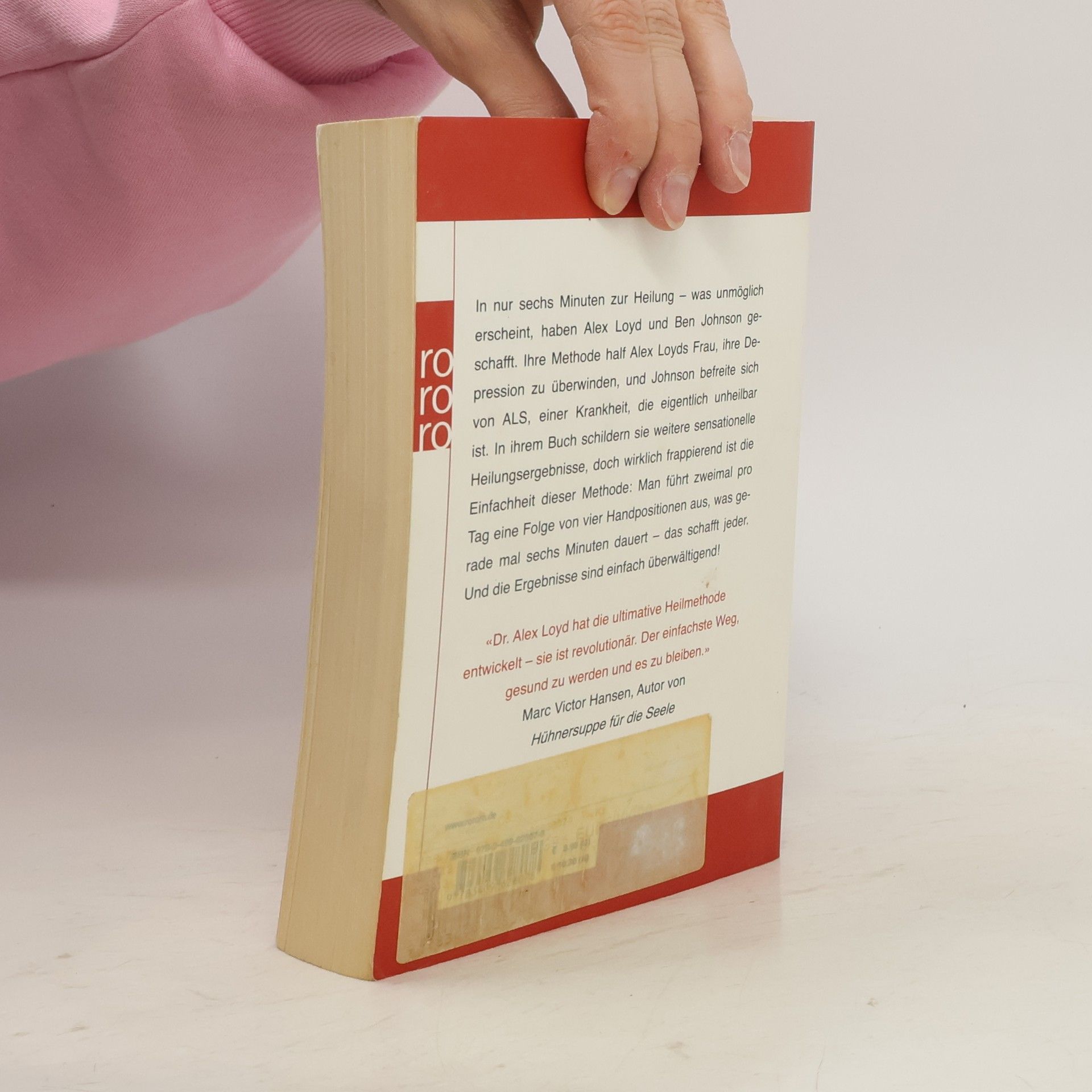 In nur sechs Minuten zur Heilung – was unmöglich erscheint, haben Alex Loyd und Ben Johnson geschafft. Ihre Methode half Alex Loyds Frau, ihre Depression zu überwinden, und Johnson befreite sich von ALS, einer Krankheit, die eigentlich unheilbar ist. In ihrem Buch schildern sie weitere sensationelle Heilungsergebnisse, doch wirklich frappierend ist die Einfachheit dieser Methode: Man führt zweimal pro Tag eine Folge von vier Handpositionen aus, was gerade mal sechs Minuten dauert – das schafft jeder. Und die Ergebnisse sind einfach überwältigend!«Dr. Alex Loyd hat die ultimative Heilmethode entwickelt – sie ist revolutionär. Der einfachste Weg, gesund zu werden und es zu bleiben.» Marc Victor Hansen, Autor von Hühnersuppe für die Seele