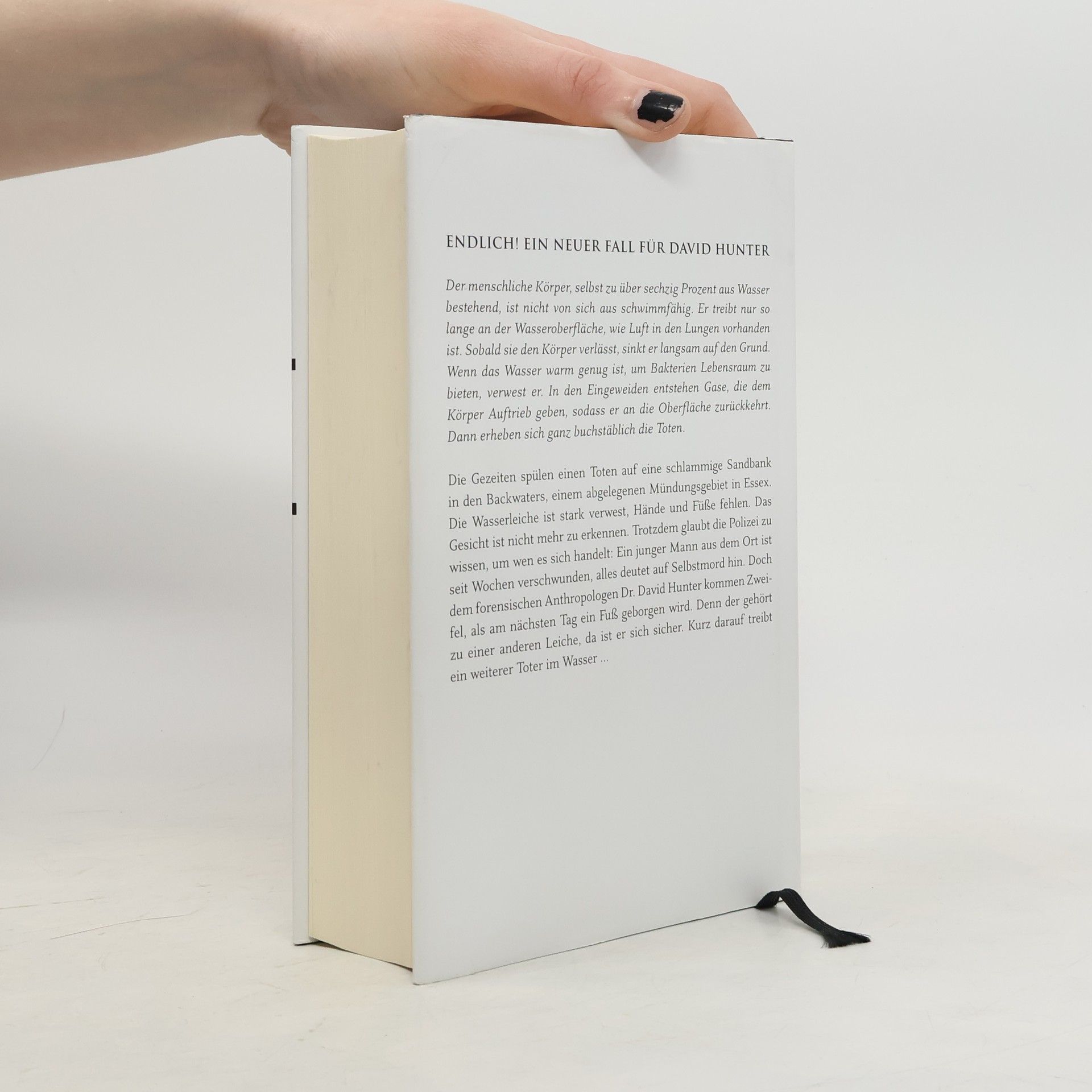 Sein fünfter Fall führt den forensischen Anthropologen David Hunter in die Backwaters, ein unwirtliches Mündungsgebiet in Essex, wo die Grenzen zwischen Land und Wasser verschwimmen. Die Wasserleiche ist stark verwest, Hände und Füße fehlen - und als am nächsten Tag ein Fuß geborgen wird, gehört dieser zu einer anderen Leiche. Doch die wahren Gefahren lauern nicht im tiefen Wasser, sondern dort, wo sie Hunter am wenigsten erwartet