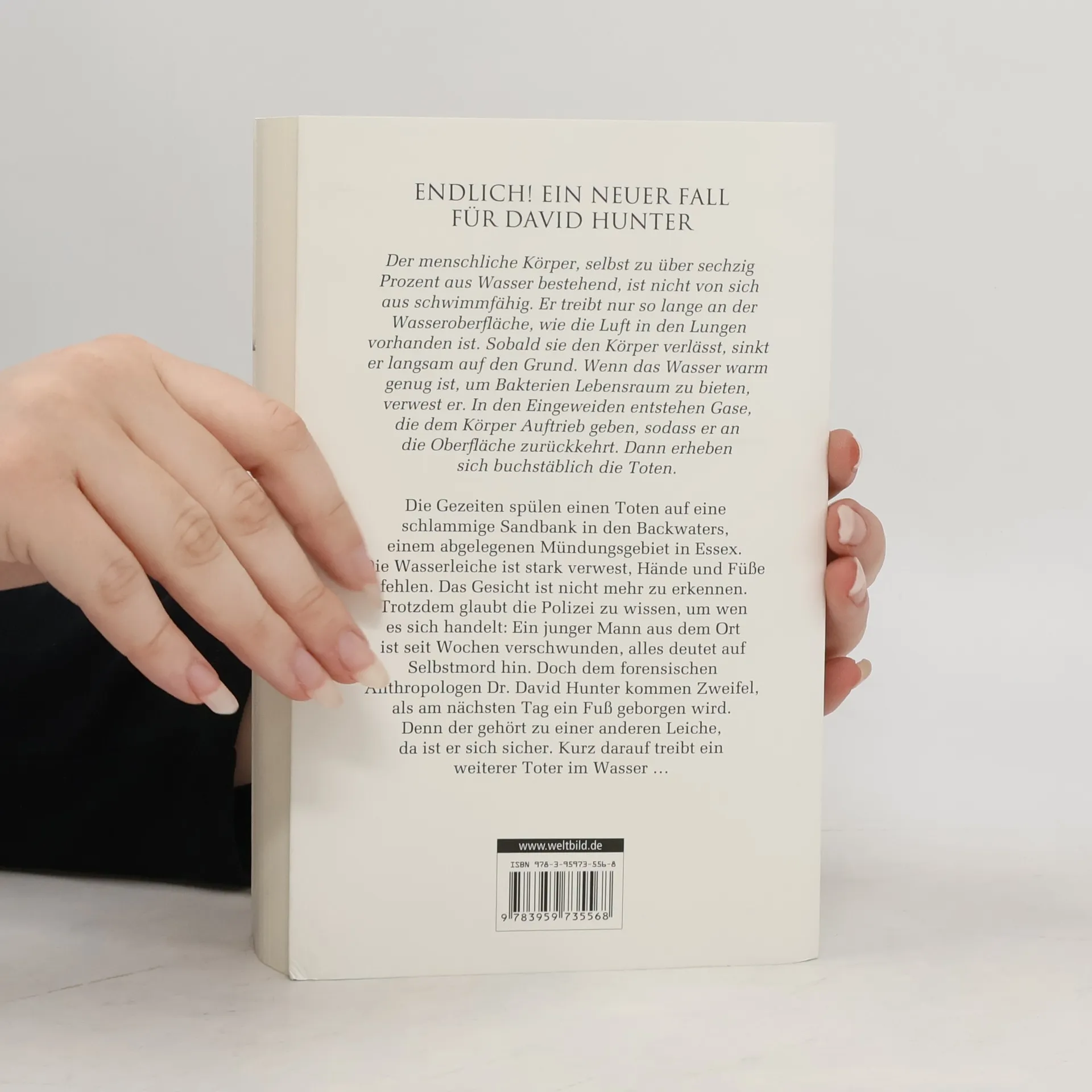 Sein fünfter Fall führt Dr. David Hunter in die Backwaters, ein unwirtliches Mündungsgebiet in Essex, wo die Grenzen zwischen Land und Wasser verschwimmen. Aber die wahren Gefahren lauern nicht in der Tiefe, sondern dort, wo er sie am wenigsten erwartet. Seit über einem Monat ist der 31-jährige Leo Villiers spurlos verschwunden. Als an einer Flussmündung zwischen Seetang und Schlamm eine stark verweste Männerleiche gefunden wird, geht die Polizei davon aus, Leo gefunden zu haben. Der Spross der einflussreichsten Familie der Gegend soll eine Affäre mit einer verheirateten Frau gehabt haben, die ebenfalls als vermisst gilt: Leo steht im Verdacht, Emma Darby und schließlich sich selbst umgebracht zu haben. Doch David Hunter kommen Zweifel an der Identität des Toten. Denn tags darauf treibt ein einzelner Fuß im Wasser, und der gehört definitiv zu einer anderen Leiche. Für die Zeit seines Aufenthalts kommt David Hunter in einem abgeschiedenen Bootshaus unter. Es gehört Andrew Trask, dessen Familie ihm mit unverholener Feindseligkeit begegnet. Aber sie scheinen nicht die einzigen im Ort zu sein, die etwas zu verbergen haben. Und noch ehe der forensische Anthropologe das Rätsel um den unbekannten Toten lösen kann, fordert die erbarmungslose Wasserlandschaft erneut ihren Tribut…