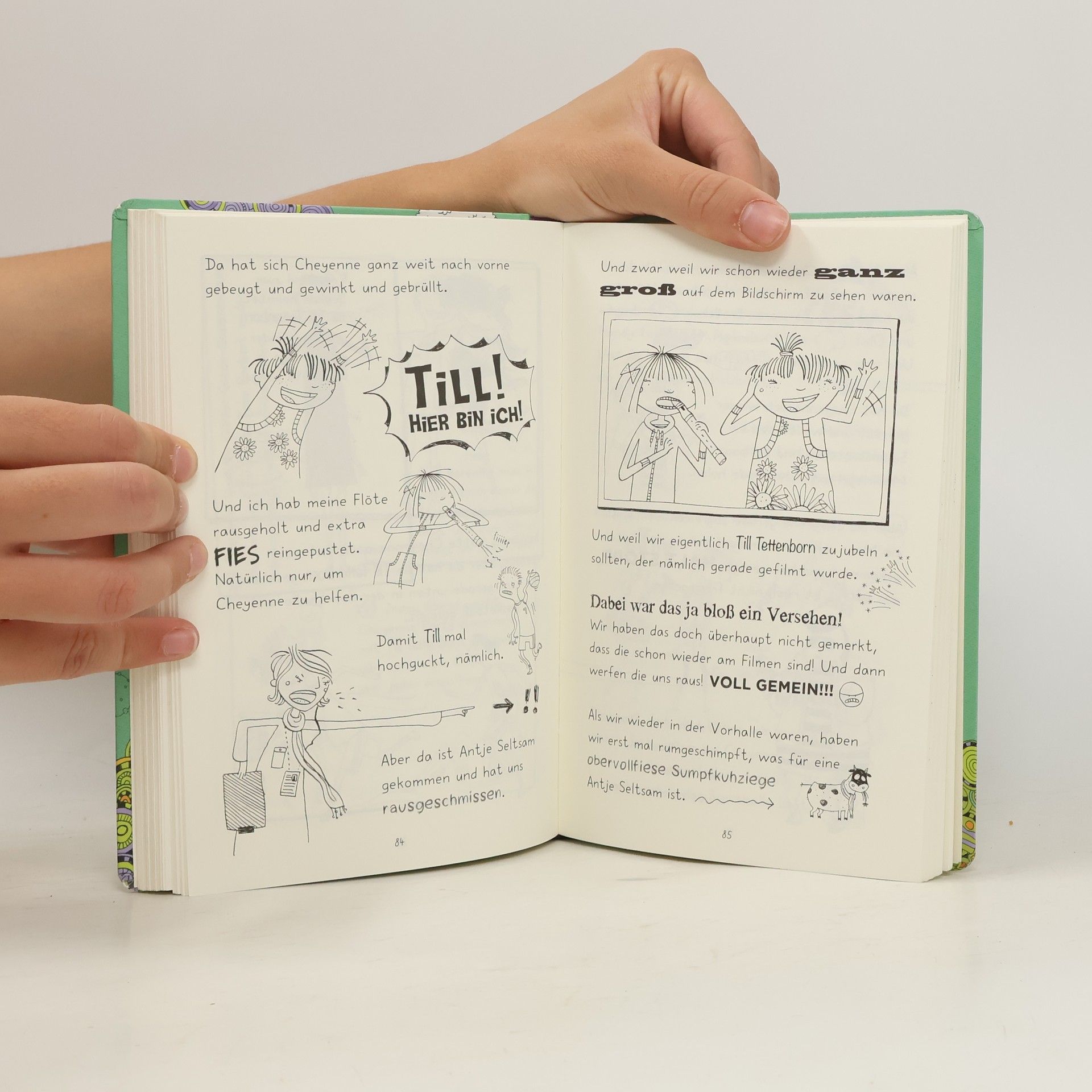 Heute muss ich nicht in die Schule. Ich hab nämlich Windpocken. Allerdings ist mir dabei auch ganz schön langweilig. Kein Wunder - schließlich hab ich nicht ein einziges Hobby. Zusammen mit Cheyenne hab ich mir dann erst mal richtig coole Hobbys ausgedacht: Fallschirmspringen und Tauchen mit Haien und Dinosaurierskelette ausgraben und so was. Bloß wissen wir leider nicht, wie wir das machen sollen. Aber egal: Jetzt werden wir sowieso erstmal berühmt. Und zwar als Hauptdarstellerinnen in einem Film mit Till Tettenborn, dem süüüüüßesten Schauspieler des Universums (findet Cheyenne auf jeden Fall)!