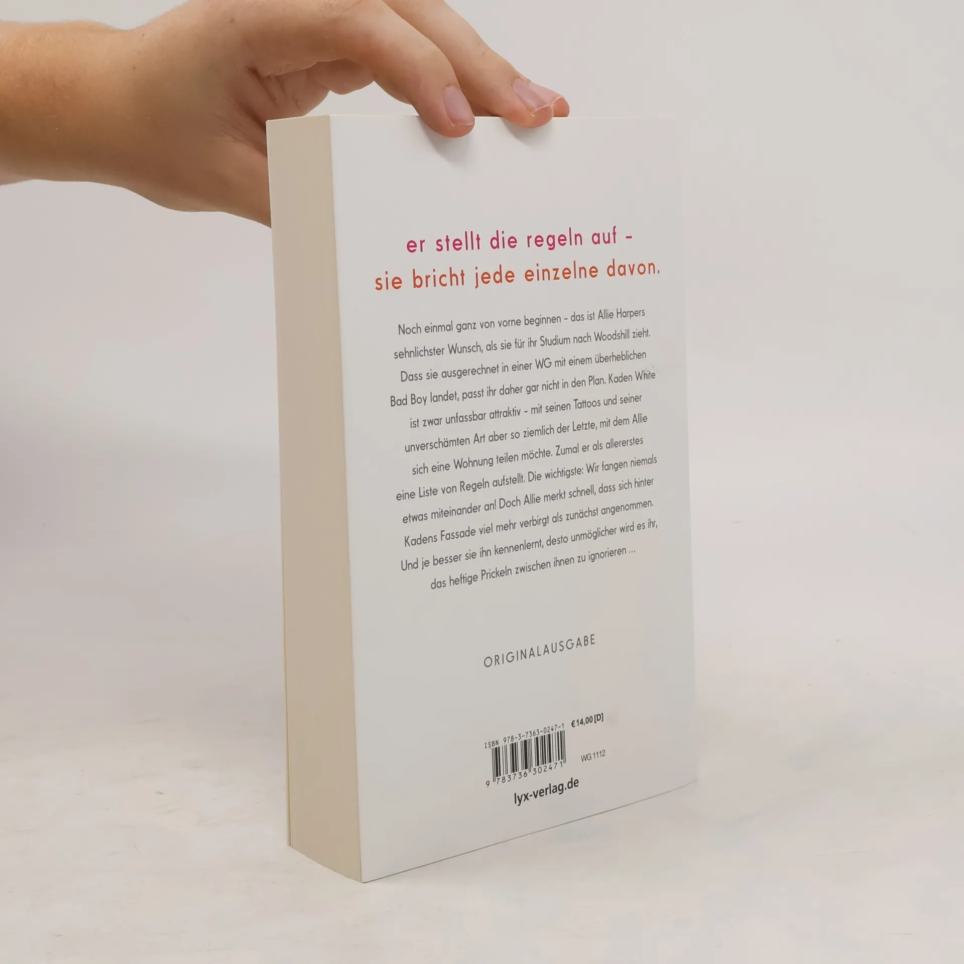Er stellt die Regeln auf - sie bricht jede einzelne davon. Noch einmal ganz von vorne beginnen - das ist Allie Harpers sehnlichster Wunsch, als sie für ihr Studium nach Woodshill zieht. Dass sie ausgerechnet in einer WG mit einem überheblichen Bad Boy landet, passt ihr daher gar nicht in den Plan. Kaden White ist zwar unfassbar attraktiv - mit seinen Tattoos und seiner unverschämten Art aber so ziemlich der Letzte, mit dem Allie sich eine Wohnung teilen möchte. Zumal er als allererstes eine Liste von Regeln aufstellt. Die wichtigste: Wir fangen niemals etwas miteinander an! Doch Allie merkt schnell, dass sich hinter Kadens Fassade viel mehr verbirgt als zunächst angenommen. Und je besser sie ihn kennenlernt, desto unmöglicher wird es ihr, das heftige Prickeln zwischen ihnen zu ignorieren ... „Lache, weine und verliebe dich. Mona Kasten hat ein Buch geschrieben, das man nicht aus der Hand legen kann!“ ANNA TODD über „Begin Again“ Der Auftaktband der „Again“-Reihe von Platz-1-SPIEGEL-Bestseller-Autorin Mona Kasten