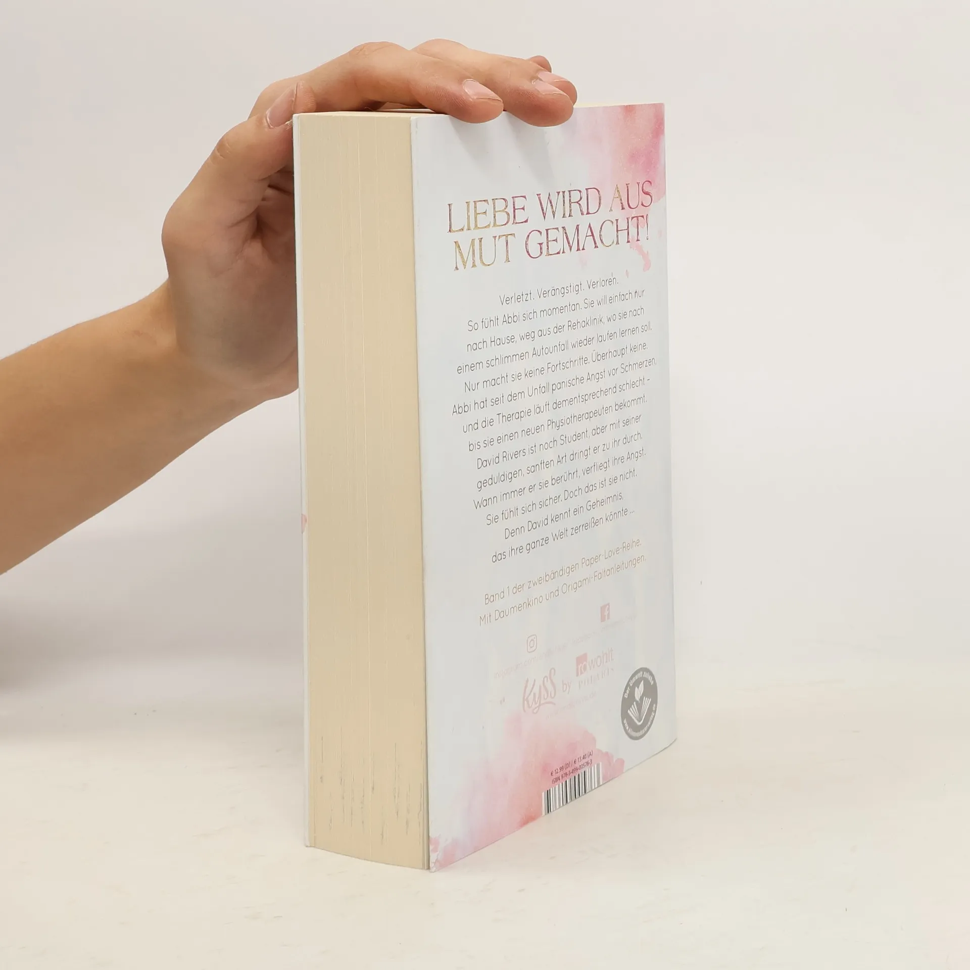 Liebe wird aus Mut gemacht! Verletzt. Verängstigt. Verloren. So fühlt Abbi sich momentan. Sie will einfach nur nach Hause, weg aus der Reha-Klinik, wo sie nach einem schlimmen Autounfall wieder laufen lernen soll. Nur macht sie keine Fortschritte. Überhaupt keine. Abbi hat seit dem Unfall panische Angst vor Schmerzen, und die Therapie läuft dementsprechend schlecht – bis sie einen neuen Physiotherapeuten bekommt. David Rivers ist noch Student, aber mit seiner geduldigen, sanften Art dringt er zu ihr durch. Wann immer er sie berührt, verfliegt ihre Angst. Sie fühlt sich sicher. Doch das ist sie nicht. Denn David kennt ein Geheimnis, das ihre ganze Welt zerreißen könnte … Band 1 der zweibändigen Paper-Love-Reihe Mit Daumenkino und Origami-Faltanleitungen