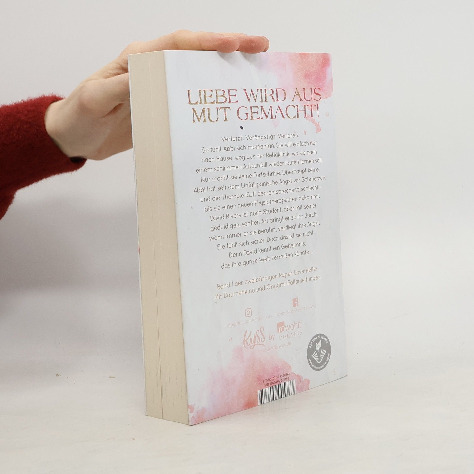 Liebe wird aus Mut gemacht! Verletzt. Verängstigt. Verloren. So fühlt Abbi sich momentan. Sie will einfach nur nach Hause, weg aus der Reha-Klinik, wo sie nach einem schlimmen Autounfall wieder laufen lernen soll. Nur macht sie keine Fortschritte. Überhaupt keine. Abbi hat seit dem Unfall panische Angst vor Schmerzen, und die Therapie läuft dementsprechend schlecht – bis sie einen neuen Physiotherapeuten bekommt. David Rivers ist noch Student, aber mit seiner geduldigen, sanften Art dringt er zu ihr durch. Wann immer er sie berührt, verfliegt ihre Angst. Sie fühlt sich sicher. Doch das ist sie nicht. Denn David kennt ein Geheimnis, das ihre ganze Welt zerreißen könnte … Band 1 der zweibändigen Paper-Love-Reihe Mit Daumenkino und Origami-Faltanleitungen