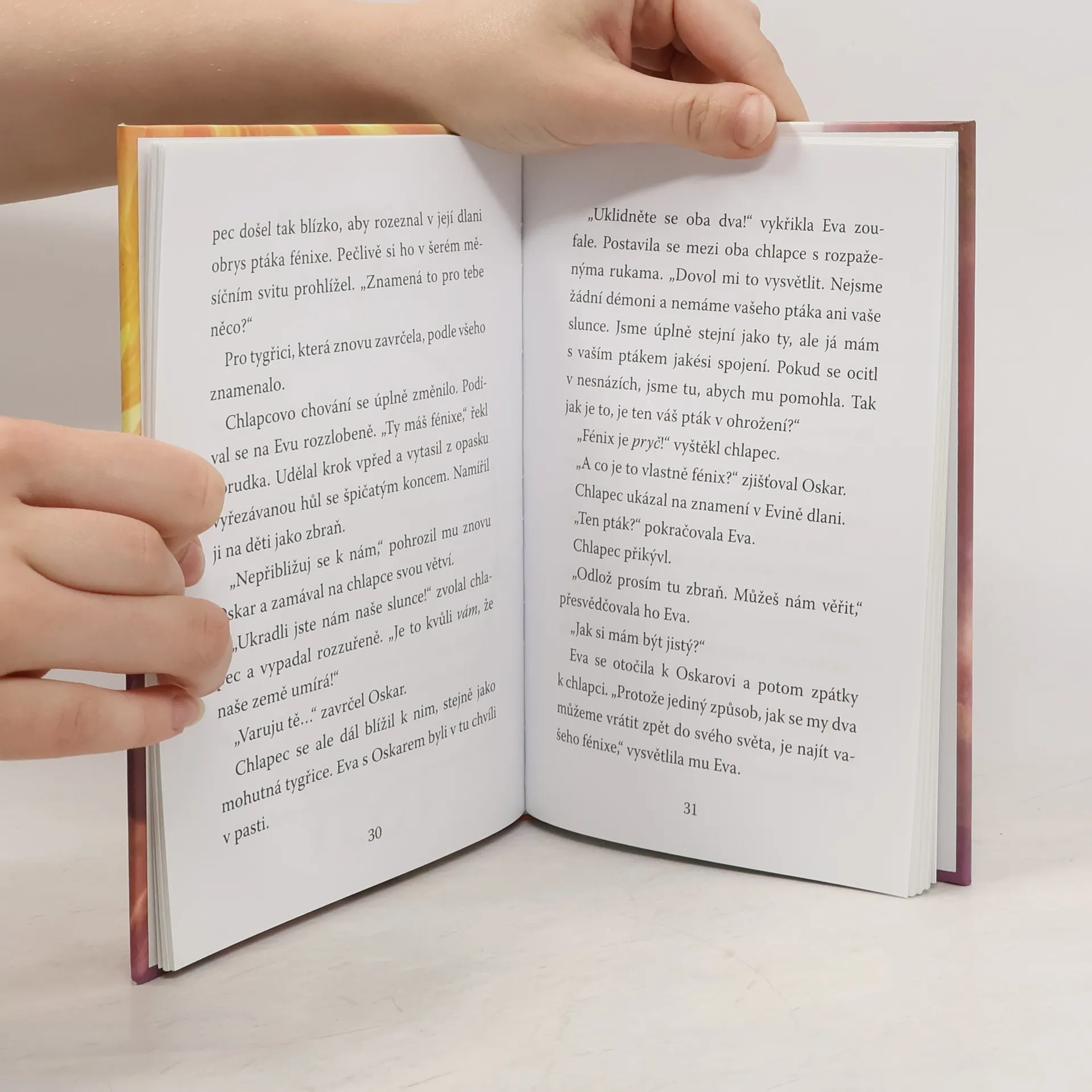 Při prohlídce obchodu se starožitnostmi narazí Eva na malou křišťálovou sošku fénixe. Než si uvědomí, o co jde, dotkne se jí – a rázem se ocitne v rozbou- řené řece, která uhání k vodopádu. Už je to tu zas! Oskar s Evou se ponoří do tajemné džungle Griffi du, kde vládnou tygři a kde každý krok může být tím posledním. Nebe je však temné a džungle je v ohro- žení života, stejně jako všichni, kdo ji obývají. Dokážou Eva s Oskarem přivést zpátky sluneční světlo, které zachrání Griffi d i jeho vzácné obyvatele?
