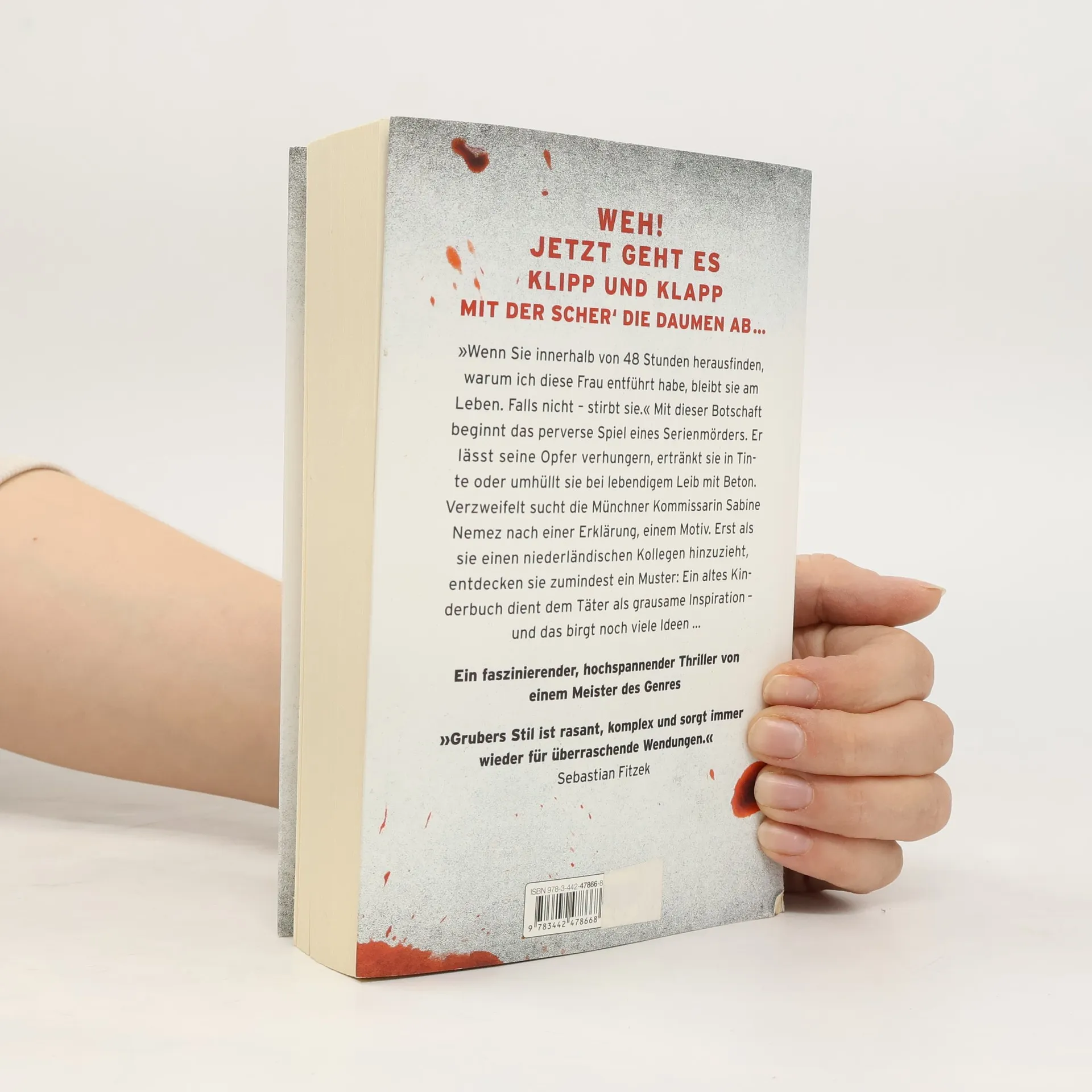 Ein Serienmörder treibt sein Unwesen – und ein altes Kinderbuch dient ihm als grausame Inspiration. »Wenn Sie innerhalb von 48 Stunden herausfinden, warum ich diese Frau entführt habe, bleibt sie am Leben. Falls nicht – stirbt sie.« Mit dieser Botschaft beginnt das perverse Spiel eines Serienmörders. Er lässt seine Opfer verhungern, ertränkt sie in Tinte oder umhüllt sie bei lebendigem Leib mit Beton. Verzweifelt sucht die Münchner Kommissarin Sabine Nemez nach einer Erklärung, einem Motiv. Erst als sie einen niederländischen Kollegen hinzuzieht, entdecken sie zumindest ein Muster: Ein altes Kinderbuch dient dem Täter als grausame Inspiration – und das birgt noch viele Ideen ... Der Auftakt zur Erfolgsserie um die Ermittler Sneijder und Nemez.