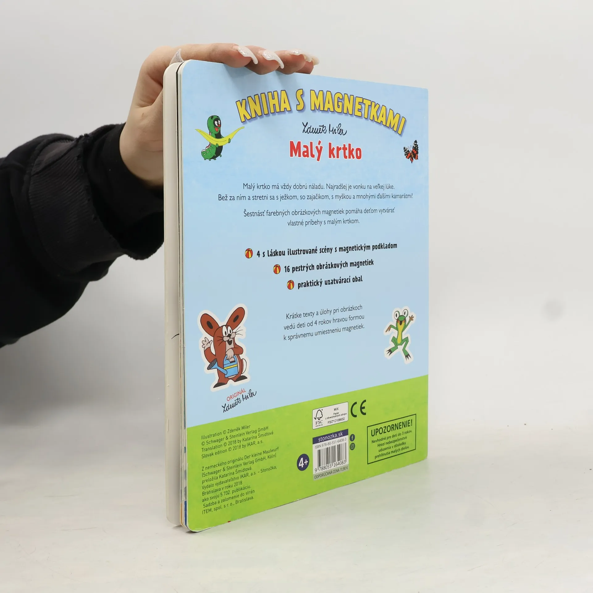 Malý krtko má vždy dobrú náladu. Najradšej je vonku na veľkej lúke. Bež za ním a stretni sa s ježkom, so zajačikom, s myškou a mnohými ďalšími kamarátmi! Šestnásť farebných obrázkových magnetiek pomáha deťom vytvárať vlastné príbehy s malým krtkom. - 4 s láskou ilustrované scény s magnetickým podkladom - 16 pestrých obrázkových magnetiek - praktický uzatvárací obal Krátke texty a úlohy v obrázku poskytujú deťom od 4 rokov cenné rady, kam magnetky správne uložiť.