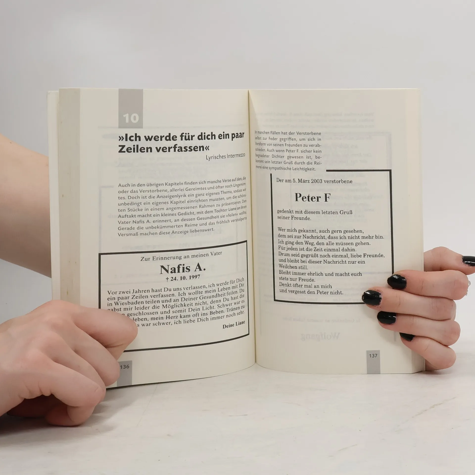 Todesanzeigen faszinieren viele Menschen, da sie nicht nur einen Abgleich mit den eigenen Lebensdaten ermöglichen, sondern auch unterhaltsame Einblicke in das Leben anderer bieten. Christian Sprang, heute Justiziar des Börsenvereins des Deutschen Buchhandels, begann als Student, Todesanzeigen zu sammeln. Was als Spaß in einer Wohngemeinschaft begann, entwickelte sich zu einem ungewöhnlichen Hobby, das Freunde und Bekannte dazu brachte, ihm eigene Funde zu schicken. So entstand eine Sammlung von über tausend Anzeigen. Die Auswahl umfasst Selbstanzeigen wie „Ich bin dann mal weg“, nachträgliche Klarstellungen wie „Er hatte Vorfahrt“, Rätselhaftes wie „Ein Gänseblümchen macht für immer Bubu“, Hassanzeigen wie „Jetzt wird gefeiert!“ und letzte Grüße wie „He Uli, es war schön mit dir“. Die Geschichten dahinter sind herzzerreißend, skurril und komisch und zeichnen ein ungewöhnliches Bild vom Leben und Sterben in Deutschland. Diese Einblicke führen beim Leser zu tröstlicher Erkenntnis und befreiendem Lachen. Schließlich wird in einer Anzeige lakonisch resümiert: „Wer nicht stirbt, hat nie gelebt“.