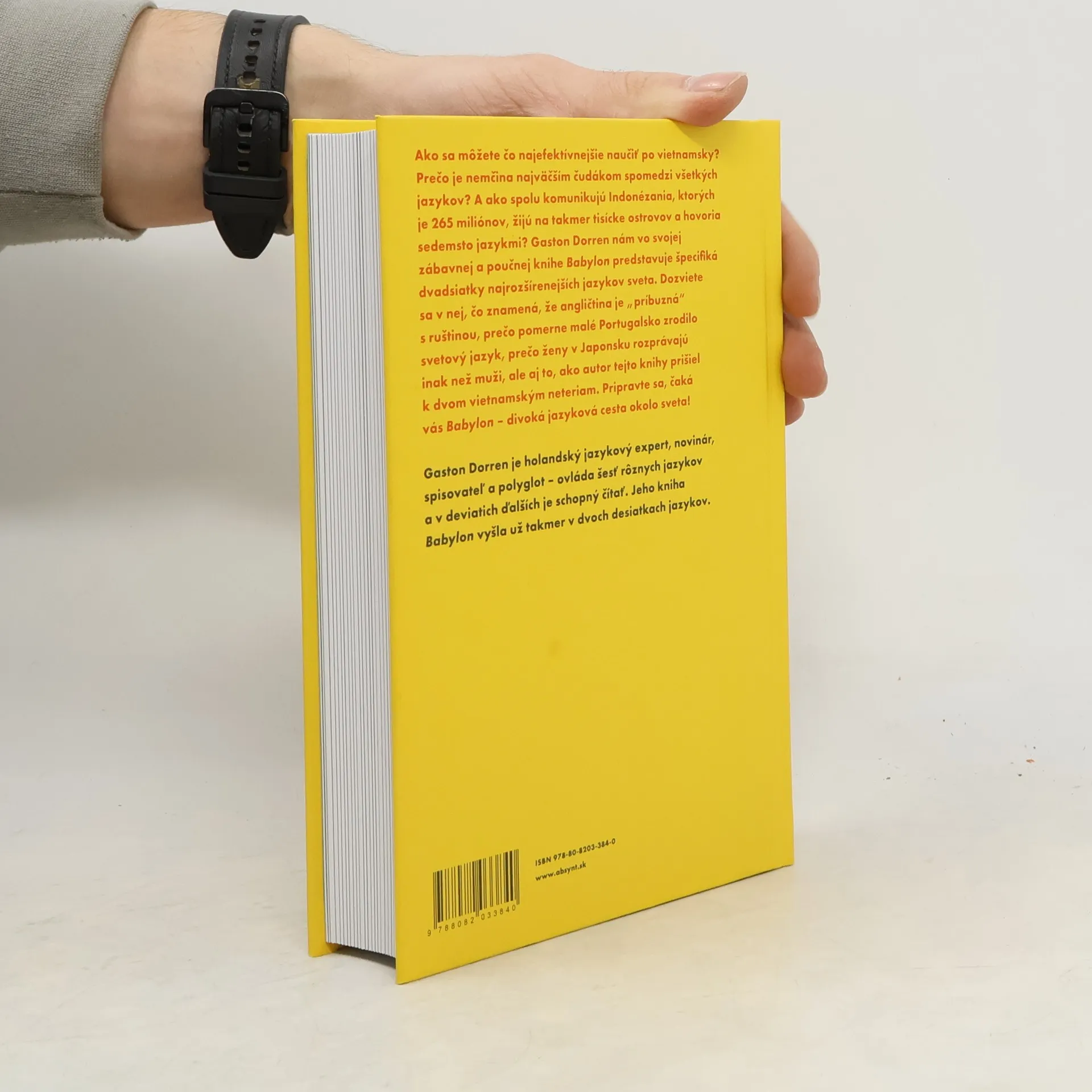 Ako sa môžete čo najefektívnejšie naučiť po vietnamsky? Prečo je nemčina najväčším čudákom spomedzi všetkých jazykov? A ako spolu komunikujú Indonézania, ktorých je 265 miliónov, žijú na takmer tisícke ostrovov a hovoria sedemsto jazykmi? Pripravte sa, čaká vás Babylon – divoká jazyková cesta okolo sveta!Dvadsať najrozšírenejších jazykov sveta vám vraj umožní dohovoriť sa s troma štvrtinami ľudskej populácie. Polyglot Gaston Dorren nám vo svojej zábavnej a poučnej knihe Babylon predstavuje špecifiká každého z tejto svetovej dvadsiatky a veľmi pútavo približuje všetko, čo s nimi súvisí – gramatické zásady, abecedu, zvukovú podobu, či zaujímavé slová, ktoré z nich prenikli do celého sveta. Pozrieme sa však taktiež na históriu, kultúru i rôzne spôsoby myslenia a vnímania reality spojené s každým z dvadsiatky najrozšírenejších jazykov sveta.Naša jazyková cesta okolo sveta povedie od vietnamčiny, cez kórejčinu, japončinu, ruštinu, francúzštinu, španielčinu, mandarínčinu, až po lingua franca – angličtinu. Dozviete sa počas nej, čo znamená, že angličtina je „príbuzná“ s ruštinou, prečo pomerne malé Portugalsko zrodilo svetový jazyk, prečo ženy v Japonsku rozprávajú inak než muži, ale aj to, ako autor tejto knihy prišiel k dvom vietnamským neteriam.