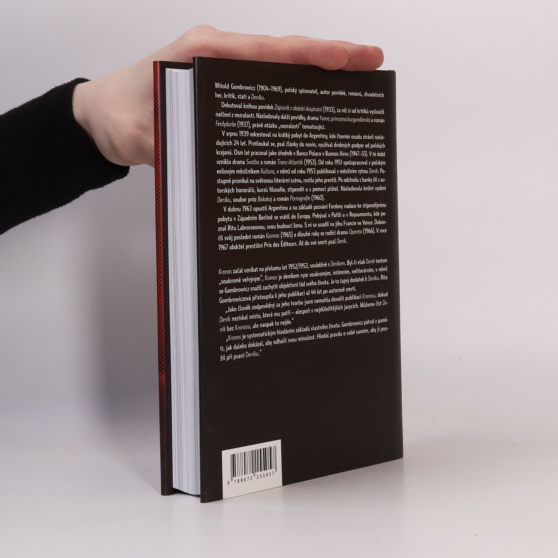 První české vydání osobního, skrytého deníkového zápisníku vynikajícího polského prozaika a dramatika. Rita Gombrowiczová, vdova po autorovi, se rozhodla tento Gombrowiczův neveřejný deník vydat po mnoha letech. Svazek s názvem Kronos je lakonický, stručně psaný, věcný. Dostává se do pozoruhodného napětí s autorovým deníkem literárním. Je mimořádně cenným svědectvím, summou dat, odkazů, osobních poznámek, portrétů lidí i celé epochy. Polští editoři jej opatřili detailně zpracovanými poznámkami, odkazy, fotografiemi, bibliografií i rejstříkem. Jde o vzornou edici na světové úrovni. Českého překladu se ujal polonista Petr Vidlák. Česká edice přebírá polskou edici beze změny, tedy i se všemi poznámkami, doprovodnými texty a fotografiemi.