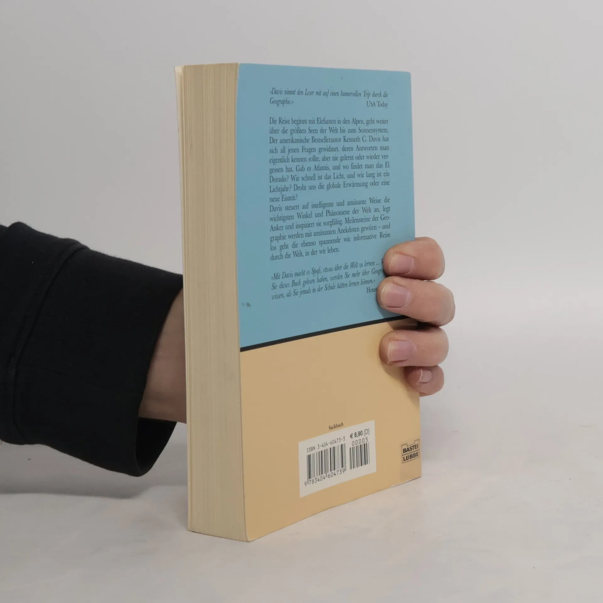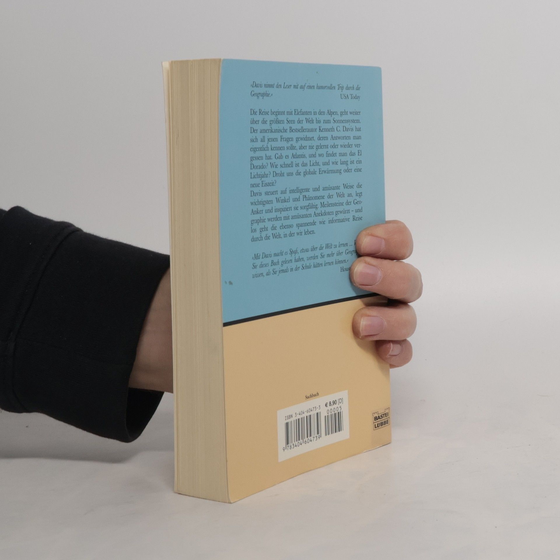 Die Reise beginnt mit Elefanten in den Alpen, geht weiter über die größten Seen der Welt bis zum Sonnensystem. Der amerikanische Bestsellerautor Kenneth C. Davis hat sich all jenen Fragen gewidmet, deren Antworten man eigentlich kennen sollte, aber nie gelernt oder wieder vergessen hat. Gab es Atlantis, und wo findet man das El Dorado? Wie schnell ist das Licht, und wie lang ist ein Lichtjahr? Droht uns die globale Erwärmung oder eine neue Eiszeit? Davis steuert auf intelligente und amüsante Weise die wichtigsen Winkel und Phänomene der Welt an, legt Anker und inspiziert sie sorgfältig. Meilensteine der Geographie werden mit amüsanten Anekdoten gewürzt - und los geht die ebenso spannende wie informative Reise durch die Welt, in der wir leben.