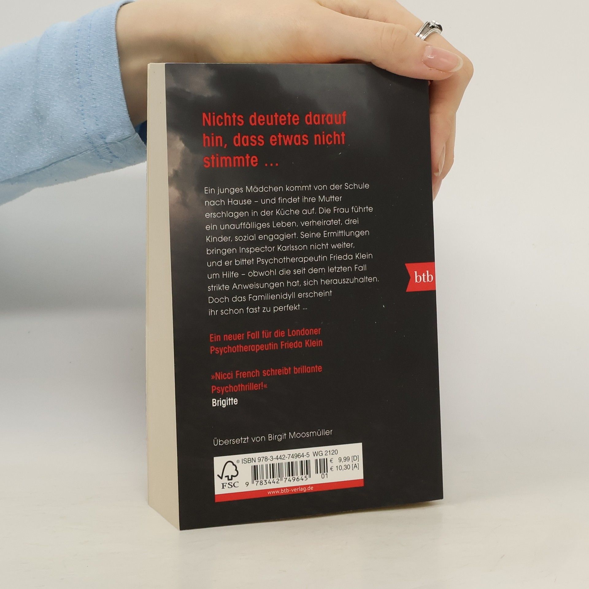 Nichts deutete darauf hin, dass etwas nicht stimmte …Ruth Lennox, Mutter von drei Kindern und glücklich verheiratet, wird ermordet aufgefunden. Doch warum musste die allseits beliebte und sozial engagierte Frau sterben? Inspektor Karlsson ruft Psychotherapeutin Frieda Klein zur Hilfe – obwohl diese seit dem letzten Fall strikte Anweisung hat, sich aus jeglichen Ermittlungen rauszuhalten. Frieda hat bald ihre Zweifel am perfekten Familienidyll. Und tatsächlich soll sie auch Recht behalten. Als sie beginnt, hinter die Fassade zu blicken, kreuzen sich ihre Wege mit dem Journalisten Jim Fearby. Der ist gerade einer Serie von Mädchenmorden auf der Spur. Gibt es eine Verbindung zwischen beiden Verbrechen?