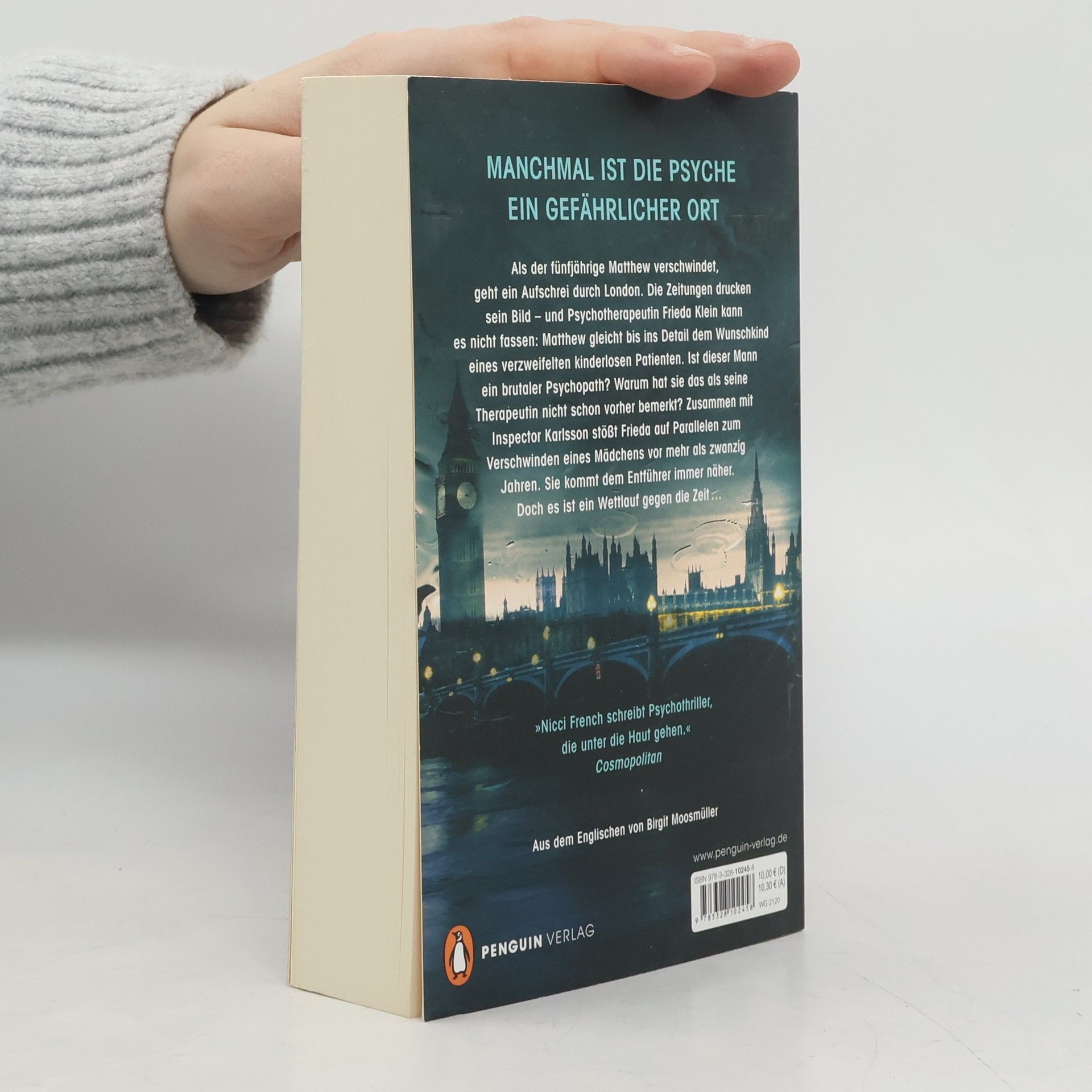 Als der 5-jährige Matthew verschwindet, geht ein Aufschrei durch London. In den Zeitungen erscheint sein Bild – und die Psychotherapeutin Frieda Klein kann es nicht fassen: Matthew gleicht bis ins Detail dem Wunschkind eines verzweifelten kinderlosen Patienten von ihr. Ist dieser Mann ein brutaler Psychopath? Warum hat sie das als Therapeutin nicht schon vorher bemerkt? Zusammen mit Inspector Karlsson stößt Frieda auf Parallelen zum Verschwinden eines Mädchens vor mehr als zwanzig Jahren. Sie kommt dem Entführer immer näher. Doch es ist ein Wettlauf gegen die Zeit …