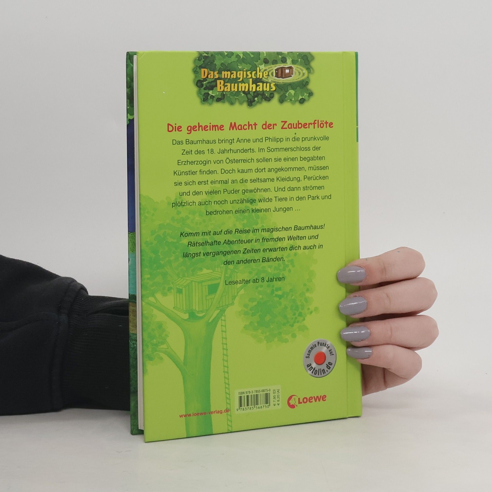Das Buch ist bei deiner Buchhandlung vor Ort und bei vielen Online-Buchshops erhältlich! + Bücher, die Kinder gerne lesen wollen + Beliebte Themen: Abenteuer, Tiere und fremde Länder + Hochwertiges Hardcover + Mit vielen Illustrationen + Bereits über 10 Millionen verkaufte Bücher der Baumhaus-Reihe + Ausgewogenes Text-Bild-Verhältnis + Große Schrift + Kurze Kapitel + Das Baumhaus bringt Anne und Philipp in die prunkvolle Zeit des 18. Jahrhunderts. Im Sommerschloss der Erzherzogin von Österreich sollen sie einen begabten Künstler finden. Doch kaum angekommen, müssen sie sich erst einmal an die seltsame Kleidung, Perücken und das viele Puder gewöhnen. Und dann strömen plötzlich auch noch unzählige wilde Tiere in den Park und bedrohen einen kleinen Jungen … Komm mit auf die Reise im magischen Baumhaus! Rätselhafte Abenteuer in fremden Welten und längst vergangenen Zeiten erwarten dich auch in den anderen Bänden. Die beliebte Kinderbuch-Reihe von Bestsellerautorin Mary Pope Osborne! Die Geschwister Anne und Philipp reisen mit dem magischen Baumhaus durch die Zeit. Sie erleben spannende Abenteuer, entdecken ferne Länder und lernen viele berühmte Persönlichkeiten kennen.