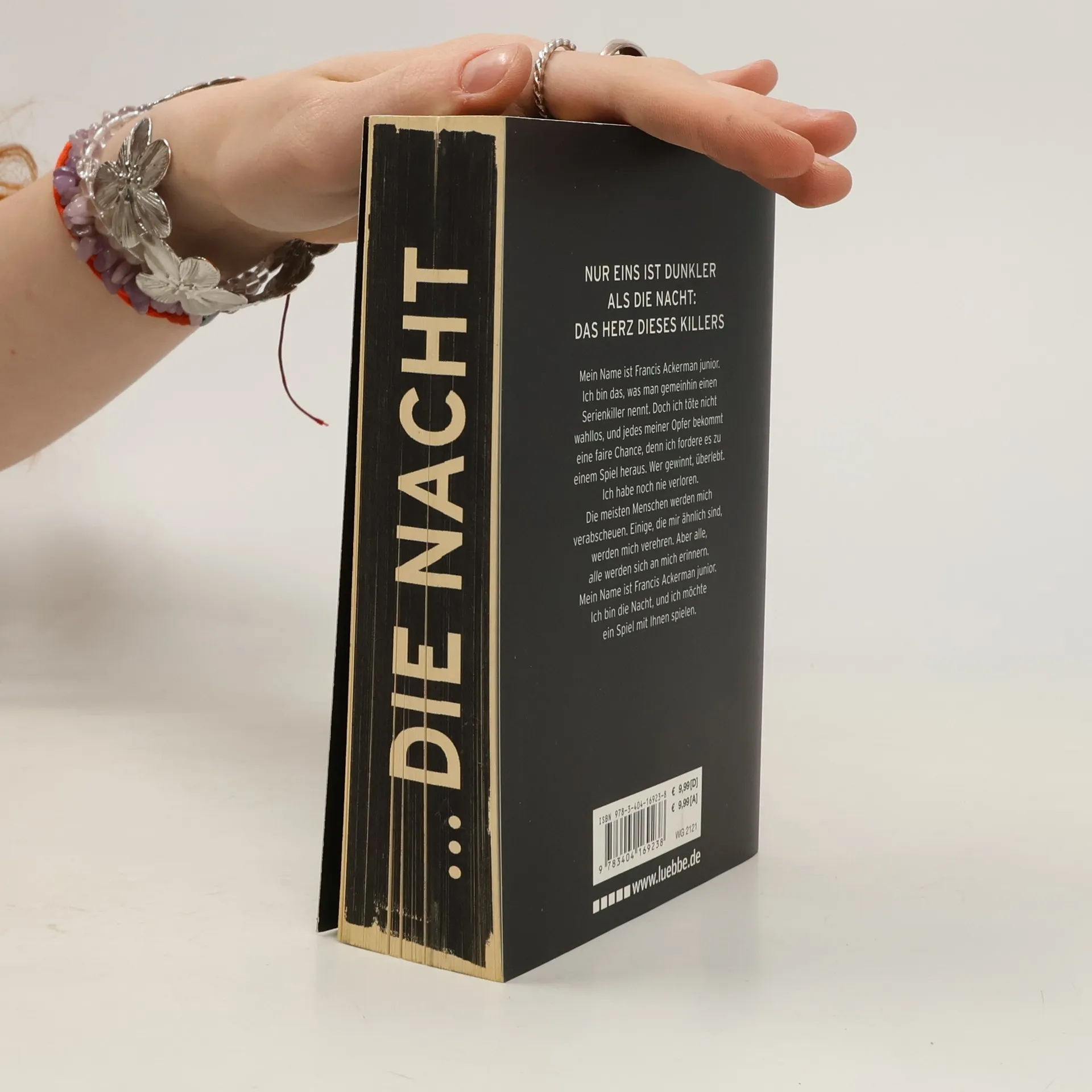 Mein Name ist Francis Ackerman junior. Ich bin das, was man gemeinhin einen Serienkiller nennt. Doch ich töte nicht wahllos, und jedes meiner Opfer bekommt eine faire Chance, denn ich fordere es zu einem Spiel heraus. Wer gewinnt, überlebt. Ich habe noch nie verloren. Die meisten Menschen werden mich verabscheuen. Einige, die mir ähnlich sind, werden mich verehren. Aber alle, alle werden sich an mich erinnern. Mein Name ist Francis Ackerman junior. Ich bin die Nacht, und ich möchte ein Spiel mit Ihnen spielen.