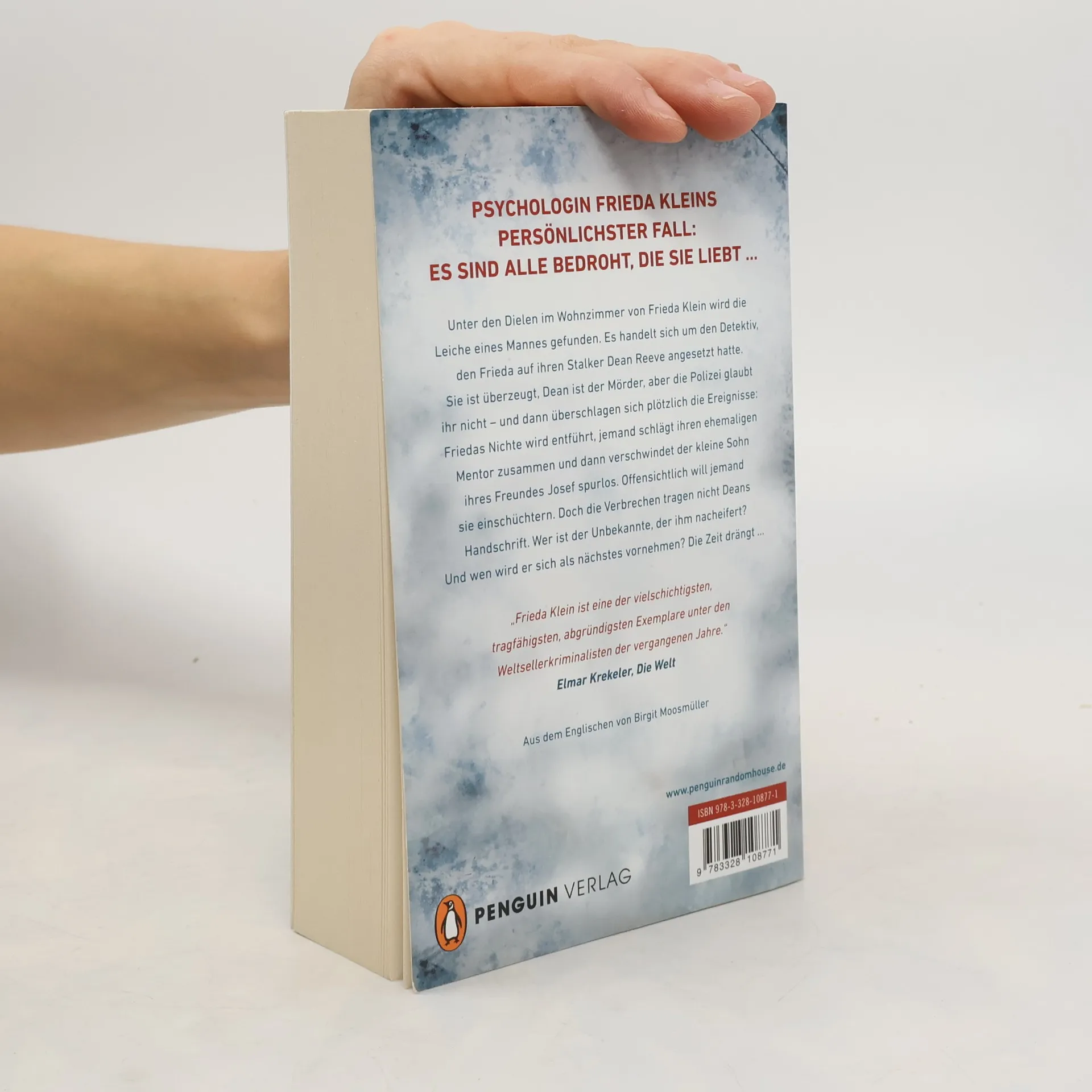 In dem gemütlichen Heim von Psychoanalytikerin Frieda Klein wird die Leiche eines Privatdetektivs gefunden ... War Friedas Erzfeind und obskurer Beschützer Dean Reeve der Mörder? Dann überschlagen sich die Ereignisse: Jemand trachtet Frieda nach dem Leben, doch zuvor versucht er sie einzuschüchtern. Ihre Nichte Chloe, Freund Jack, der schwer krebskranke Reuben und Josefs kleiner Sohn – sie alle werden Opfer von Anschlägen. Die Polizei tappt im Dunkeln, aber Frieda ist bald klar, dass die Verbrechen nicht Reeves Handschrift tragen. Doch wer ist der Unbekannte, der ihm nacheifert? Ein atemloser Thriller, in dem Frieda sich von ihrer verwundbaren Seite zeigt – denn es sind alle bedroht, die sie liebt ...