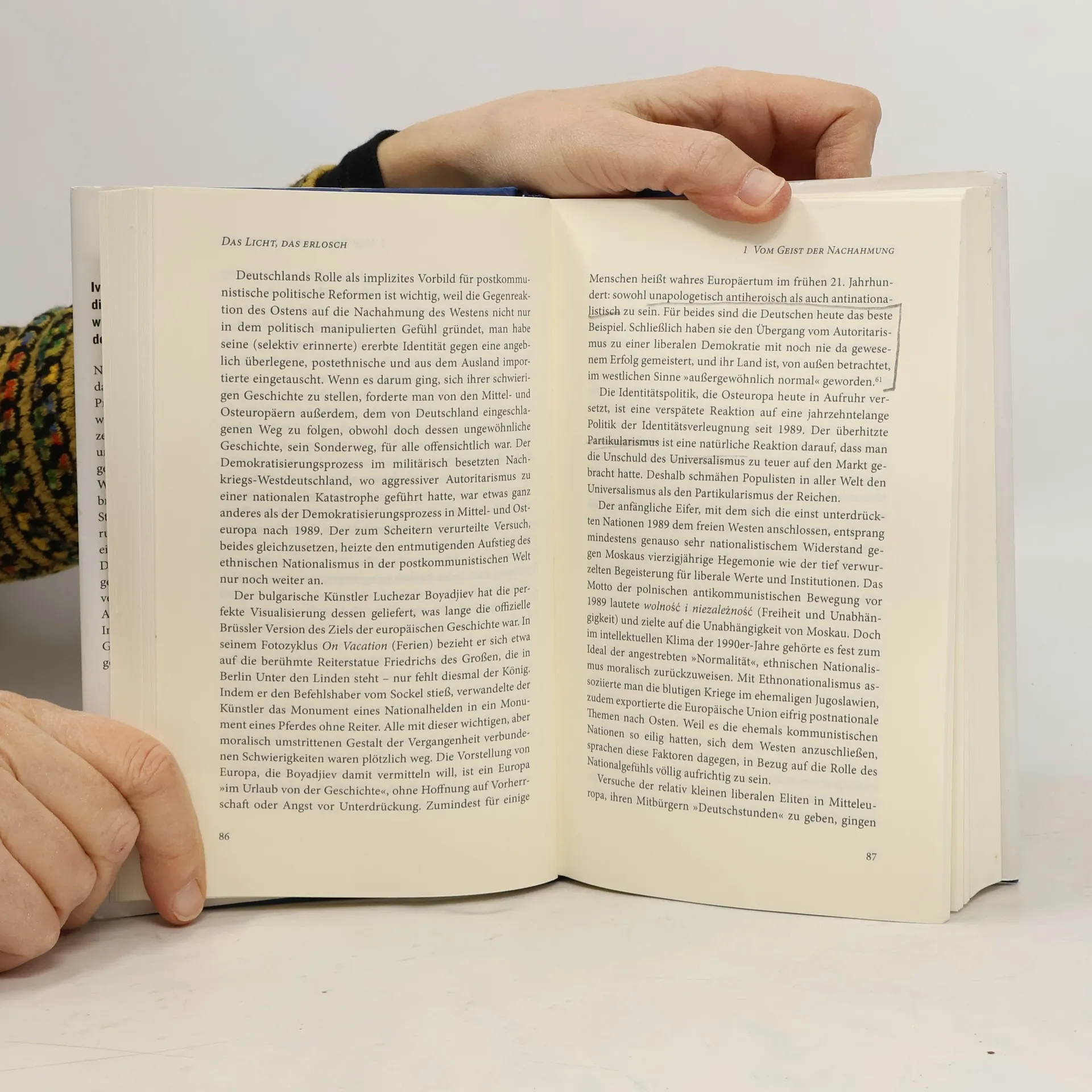 Nach dem Kalten Krieg wurde das liberal-demokratische Modell westlicher Prägung als alternativlos angesehen. Heute zerbrechen weltweit Demokratien, untergraben von Populismus und Nationalismus, besonders in Osteuropa. Die Autoren analysieren, warum der Westen seine Strahlkraft verloren hat. Das einst verkündete „Ende der Geschichte“ führte in Wirklichkeit zu einem Zeitalter der Nachahmung, in dem der Osten den Westen imitierte und in Gefühle von Unzulänglichkeit und Identitätsverlust versank. Das Vorbild hat mittlerweile seine moralische Glaubwürdigkeit eingebüßt und ein gefährliches Wertevakuum hinterlassen. Diese Analyse fordert dazu auf, bisherige Überzeugungen zu hinterfragen und die komplexe Beziehung zwischen Liberalismus und Antiliberalismus neu zu bewerten. Das Buch bietet zahlreiche überraschende Einsichten und beleuchtet massenpsychologische Prozesse unserer Zeit, ohne sich auf abgedroschene Begriffe zu stützen. Krastev, ein Geschichtenerzähler und Philosoph, und Holmes, ein brillanter politischer Denker, präsentieren eine fesselnde Erzählung, die Literatur, politische Realität und tiefgründige Gedanken vereint.