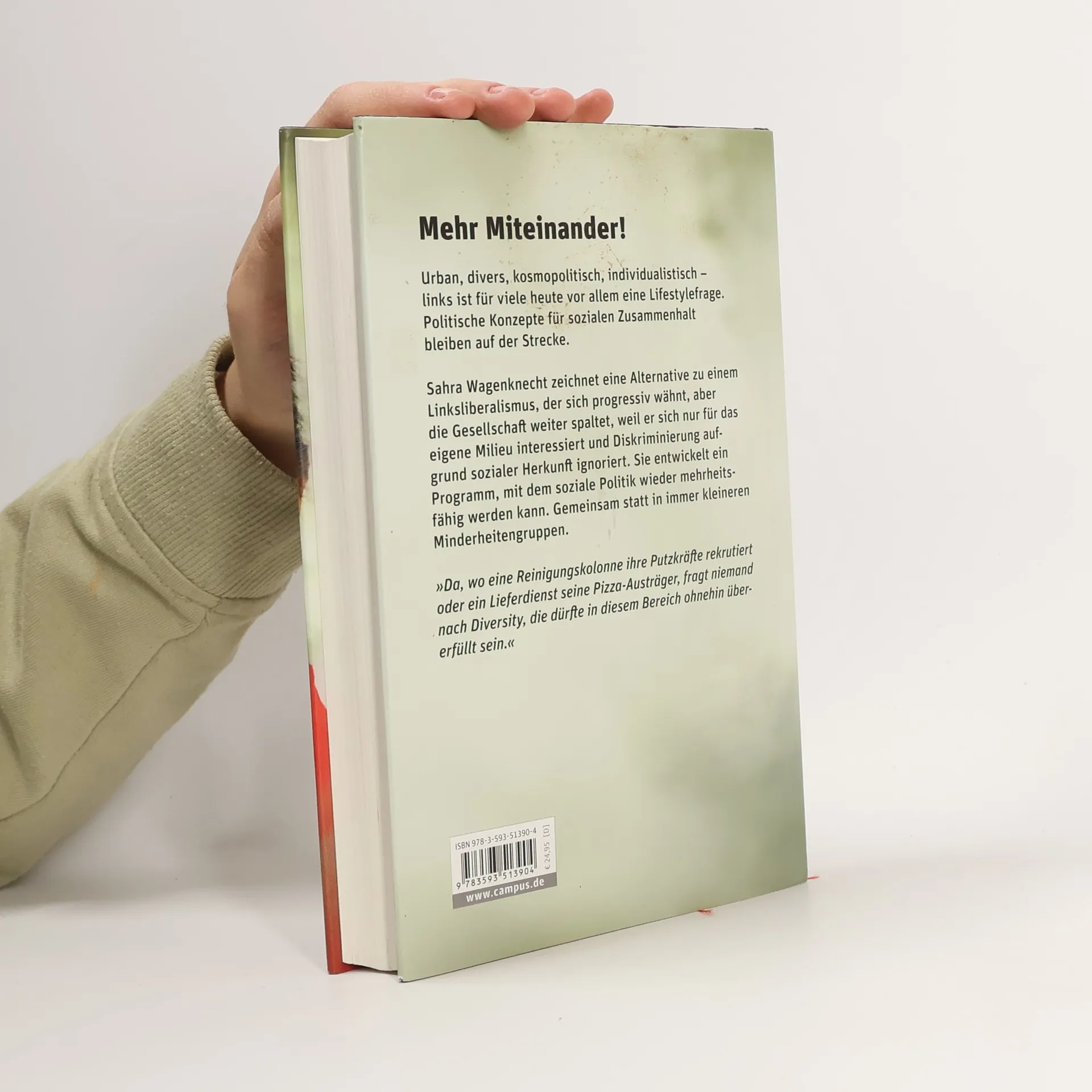 Urban, divers, kosmopolitisch, individualistisch – links ist für viele heute vor allem eine Lifestylefrage. Politische Konzepte für sozialen Zusammenhalt bleiben auf der Strecke, genauso wie schlecht verdienende Frauen, arme Zuwandererkinder, ausgebeutete Leiharbeiter und große Teile der Mittelschicht. Ob in den USA oder Europa: Wer sich auf Gendersternchen konzentriert statt auf Chancengerechtigkeit und dabei Kultur und Zusammengehörigkeitsgefühl der Bevölkerungsmehrheit vernachlässigt, arbeitet der politischen Rechten in die Hände. Sahra Wagenknecht zeichnet in ihrem Buch eine Alternative zu einem Linksliberalismus, der sich progressiv wähnt, aber die Gesellschaft weiter spaltet, weil er sich nur für das eigene Milieu interessiert und Diskriminierung aufgrund sozialer Herkunft ignoriert. Sie entwickelt ein Programm, mit dem linke Politik wieder mehrheitsfähig werden kann. Gemeinsam statt egoistisch.