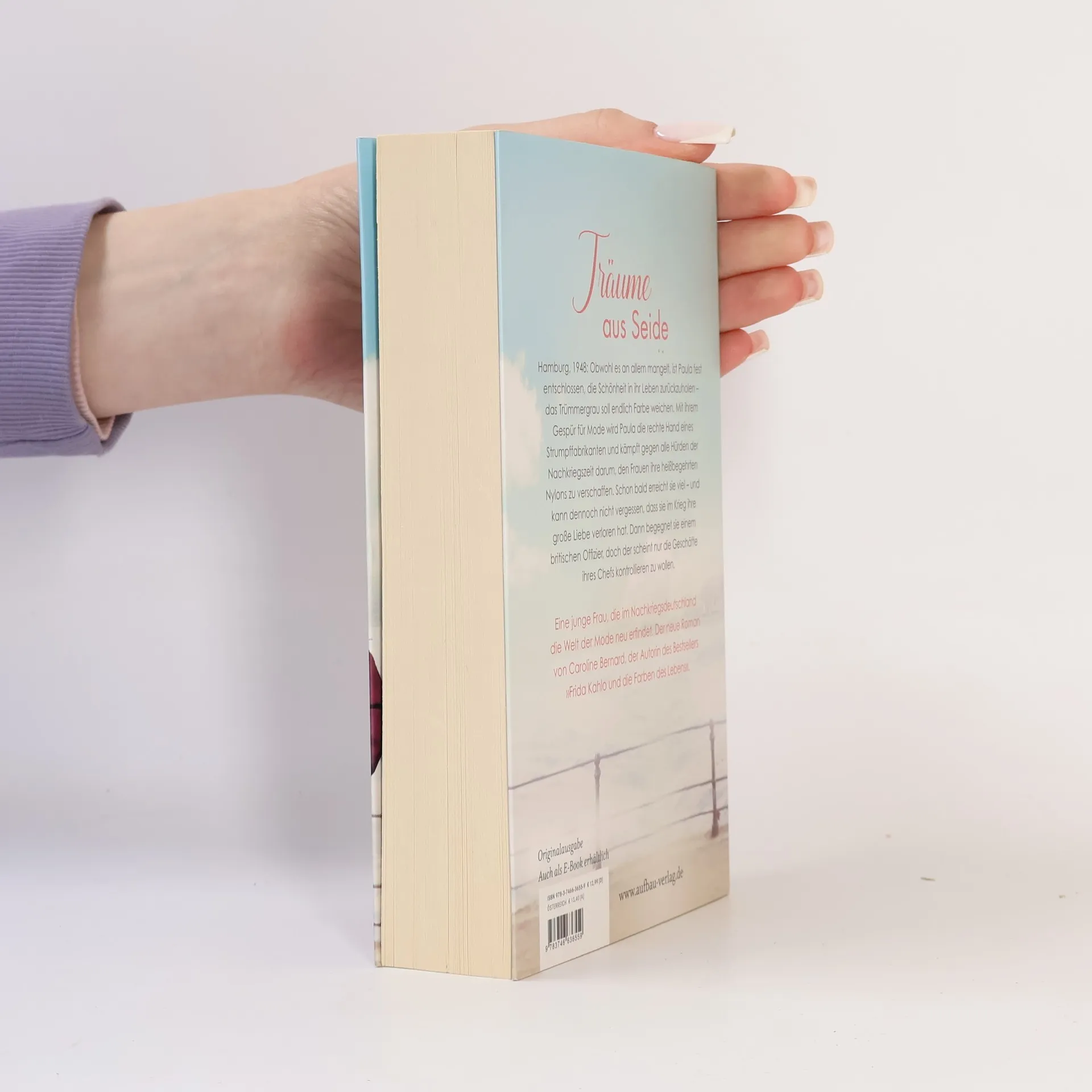 Träume aus Seide. Hamburg, 1948: Obwohl es an allem mangelt, ist Paula fest entschlossen, die Schönheit in ihr Leben zurückzuholen – das Trümmergrau soll endlich Farbe weichen. Mit ihrem Gespür für Mode wird Paula die rechte Hand eines Strumpffabrikanten und kämpft gegen alle Hürden der Nachkriegszeit darum, den Frauen ihre heißbegehrten Nylons zu verschaffen. Schon bald erreicht sie viel – und kann dennoch nicht vergessen, dass sie im Krieg ihre große Liebe verloren hat. Dann begegnet sie einem britischen Offizier, doch der scheint nur die Geschäfte ihres Chefs kontrollieren zu wollen. Eine junge Frau, die im Nachkriegsdeutschland die Welt der Mode neu erfindet. Der neue Roman von der Autorin des Nummer-1-Bestsellers „Frida Kahlo und die Farben des Lebens“