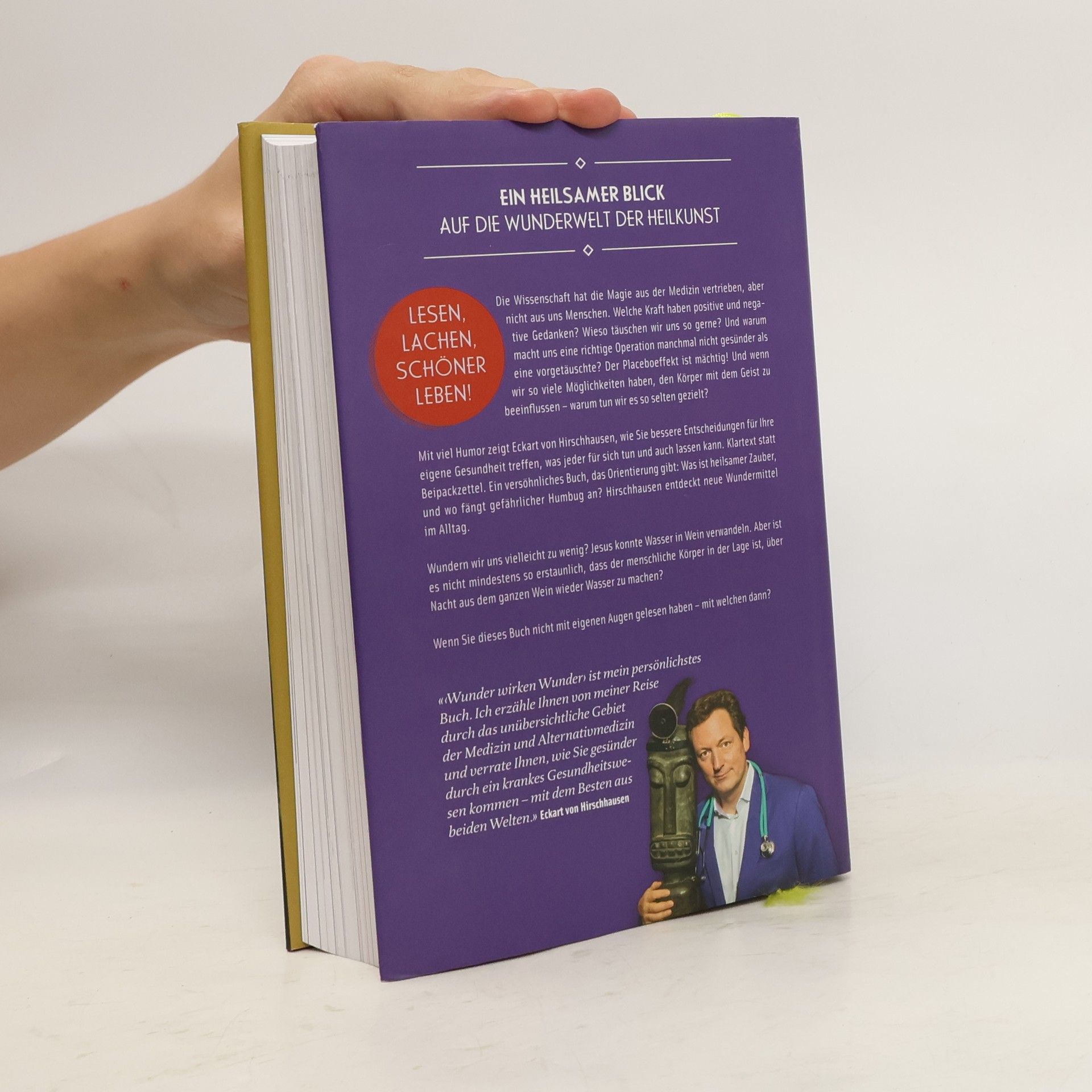 Ein heilsamer Blick auf die Wunderwelt der Heilkunst Die Wissenschaft hat die Magie aus der Medizin vertrieben, aber nicht aus uns Menschen. Welche Kraft haben positive und negative Gedanken? Wieso täuschen wir uns so gerne? Und warum macht uns eine richtige Operation manchmal nicht gesünder als eine vorgetäuschte? Der Placeboeffekt ist mächtig! Und wenn wir so viele Möglichkeiten haben, den Körper mit dem Geist zu beeinflussen – warum tun wir es so selten gezielt? Mit viel Humor zeigt Eckart von Hirschhausen, wie Sie bessere Entscheidungen für Ihre eigene Gesundheit treffen, was jeder für sich tun und auch lassen kann. Klartext statt Beipackzettel. Ein versöhnliches Buch, das Orientierung gibt: Was ist heilsamer Zauber, und wo fängt gefährlicher Humbug an? Hirschhausen entdeckt neue Wundermittel im Alltag. Wundern wir uns vielleicht zu wenig? Jesus konnte Wasser in Wein verwandeln. Aber ist es nicht mindestens so erstaunlich, dass der menschliche Körper in der Lage ist, über Nacht aus dem ganzen Wein wieder Wasser zu machen? Wenn Sie dieses Buch nicht mit eigenen Augen gelesen haben – mit welchen dann? «'Wunder wirken Wunder› ist mein persönlichstes Buch. Ich erzähle Ihnen von meiner Reise durch das unübersichtliche Gebiet der Medizin und Alternativmedizin und verrate Ihnen, wie Sie gesünder durch ein krankes Gesundheitswesen kommen – mit dem Besten aus beiden Welten.» (Eckart von Hirschhausen)