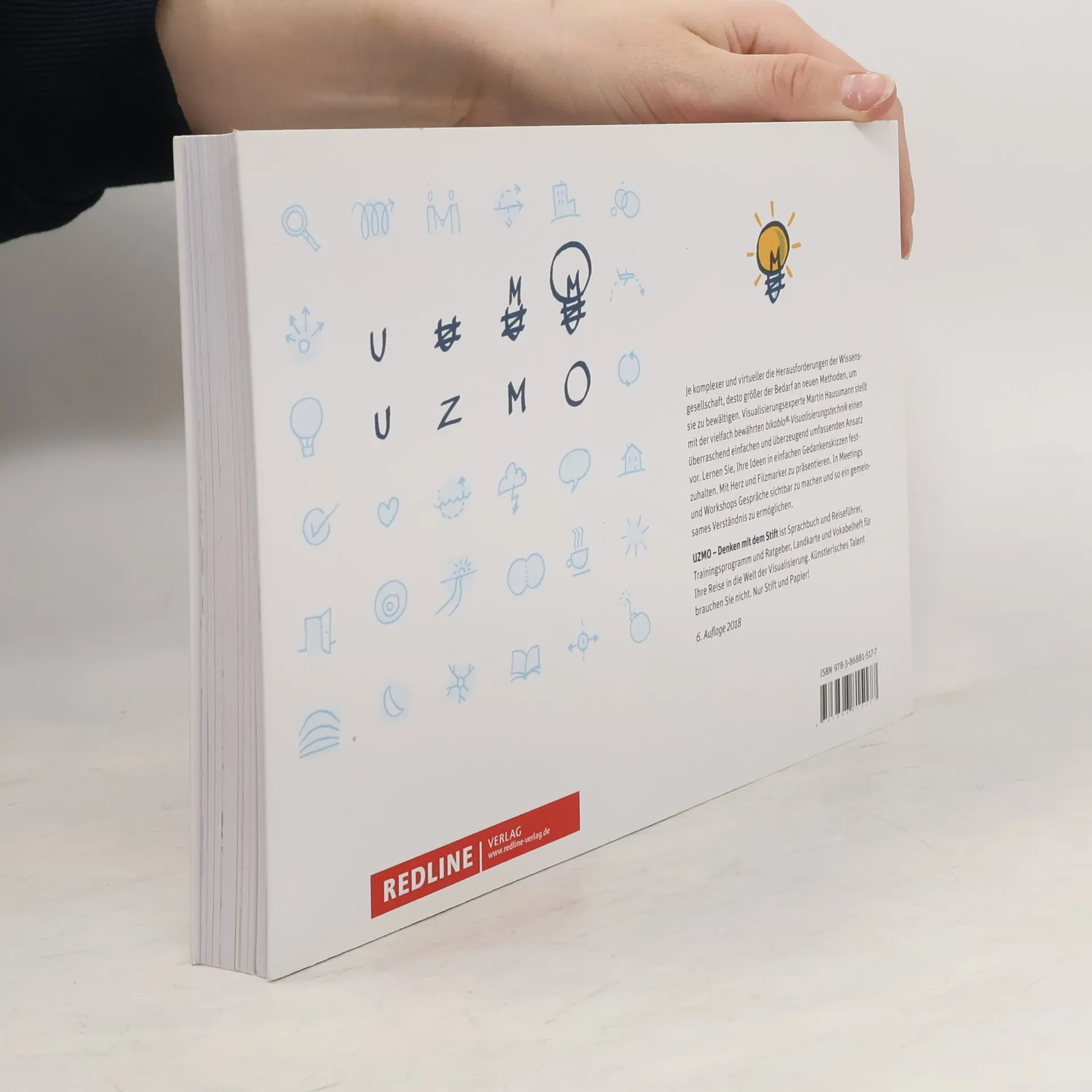 Visual Facilitating heißt ein Trendthema, das aus den USA nach Europa herüberschwappt: Mit einfachen Skizzen werden Dialoge, Ideen und komplexe Sachverhalte in Echtzeit visualisiert. Dies ist der erste umfassende Praxisratgeber für Visual Facilitating im deutschen Sprachraum. Anschaulich zeigt der Autor, wie und in welchen Bereichen sich diese visuelle Sprache in der Praxis anwenden lässt. Zahlreiche praktische Zeichenanleitungen machen die Methode für jedermann umsetzbar. Jeder kann Ideen, Prozesse und abstrakte Zusammenhänge in Meetings, Trainings oder Präsentationen von Hand sichtbar machen! Visual Facilitating ist kein lustiges Add-on zur Aufl ockerung von Konferenzen, sondern macht komplizierte Zusammenhänge begreifbar. Übrigens: Was ist »UZMO«? Das ist der Code, mit dem jeder aus vier Buchstaben ruckzuck eine wirkungsvolle Glühbirne zeichnen kann. Ganz ohne Kunstausbildung. Eben typisch Visual Facilitating.