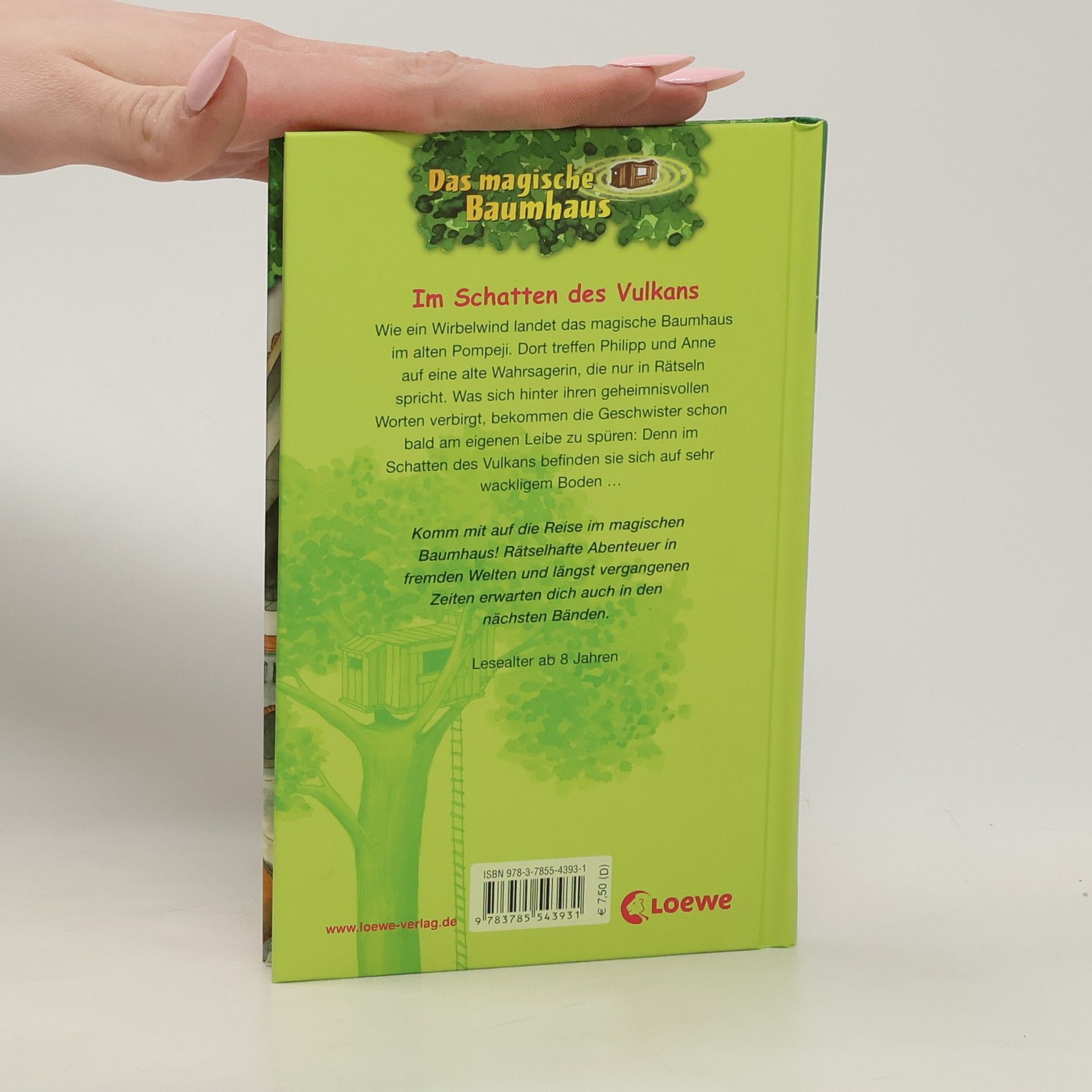 Das Buch ist bei deiner Buchhandlung vor Ort und bei vielen Online-Buchshops erhältlich! + Bücher, die Kinder gerne lesen wollen + Beliebte Themen: Abenteuer, Tiere, fremde Länder und Antike + Hochwertiges Hardcover + Mit vielen Illustrationen + Bereits über 10 Millionen verkaufte Bücher der Baumhaus-Reihe + Ausgewogenes Text-Bild-Verhältnis + Große Schrift + Kurze Kapitel + Wie ein Wirbelwind landet das magische Baumhaus im alten Pompeji. Dort treffen Philipp und Anne auf eine alte Wahrsagerin, die nur in Rätseln spricht. Was sich hinter ihren geheimnisvollen Worten verbirgt, bekommen die Geschwister schon bald am eigenen Leibe zu spüren: Denn im Schatten des Vulkans befinden sie sich auf sehr wackligem Boden ... Komm mit auf die Reise im magischen Baumhaus! Rätselhafte Abenteuer in fremden Welten und längst vergangenen Zeiten erwarten dich auch in den nächsten Bänden. Die beliebte Kinderbuch-Reihe von Bestsellerautorin Mary Pope Osborne! Die Geschwister Anne und Philipp reisen mit dem magischen Baumhaus durch die Zeit. Sie erleben spannende Abenteuer, entdecken ferne Länder und lernen viele berühmte Persönlichkeiten kennen. Mehr Infos zur Reihe und tolle Extras unter: www. MagischesBaumhaus. de