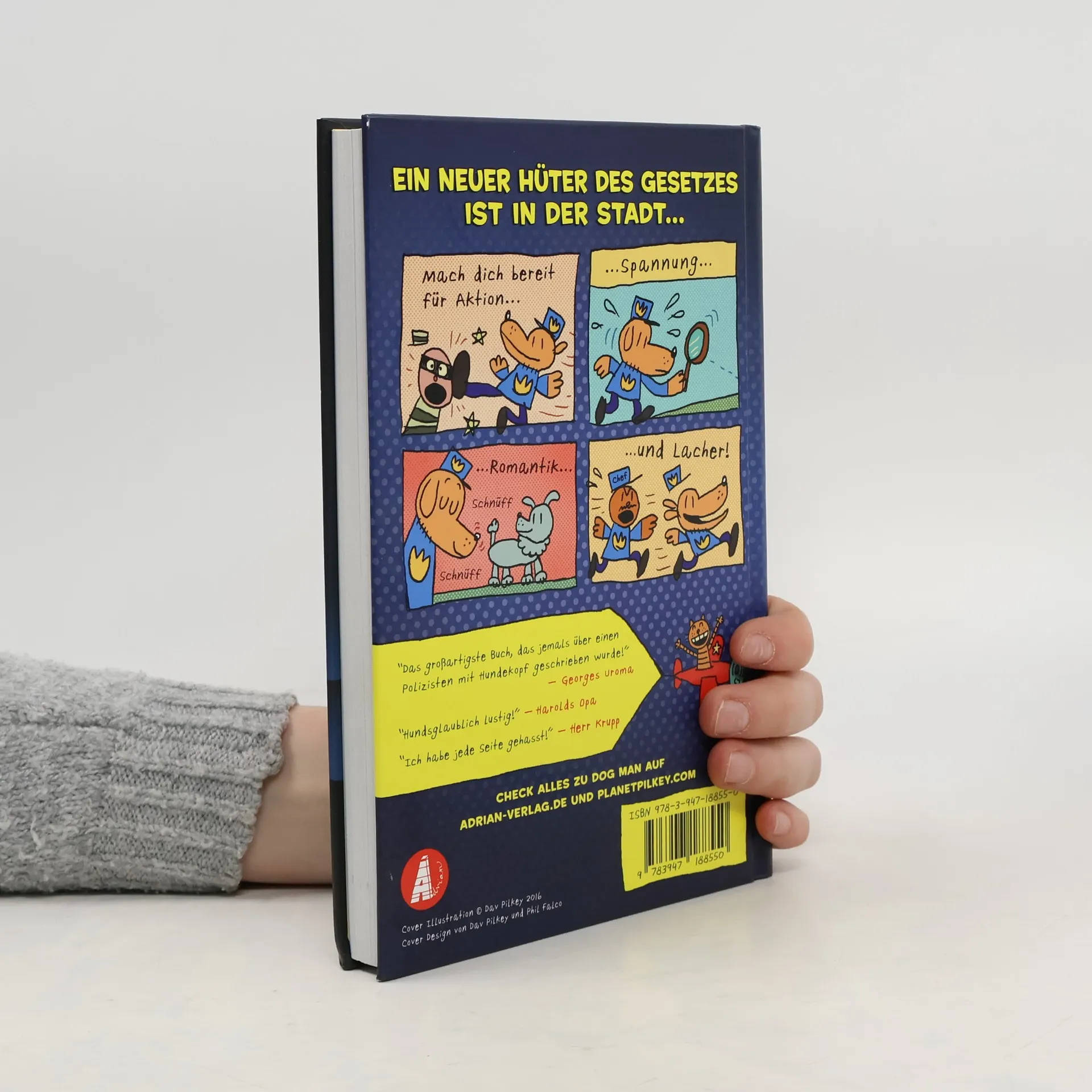 Heule vor Lachen mit dem Mega-Bestseller aus Amerika mit mehr als 25 Millionen verkauften Exemplaren! Es gibt einen neuen Superhelden in der Stadt. Dog Man ist halb Hund, halb Mensch und voller Tatendrang! Kein Bösewicht ist nun mehr sicher. Wird er Petey, die fieseste Katze der Welt überlisten können? Mach dich bereit für Spannung und jede Menge Lacher!- So lustig und spannend kann Lesen sein. - Millionen begeisterter Kinder feiern die Abenteuer des kleinen Superhelden.- Farbige Illustrationen auf jeder Seite.- Neuer Comic-Trend, der sogar Lesemuffel motiviert.- Der Autor Dav Pilkey ist einer der meistegelesenen Autoren weltweit bei Lesern im Grundschulalter.
