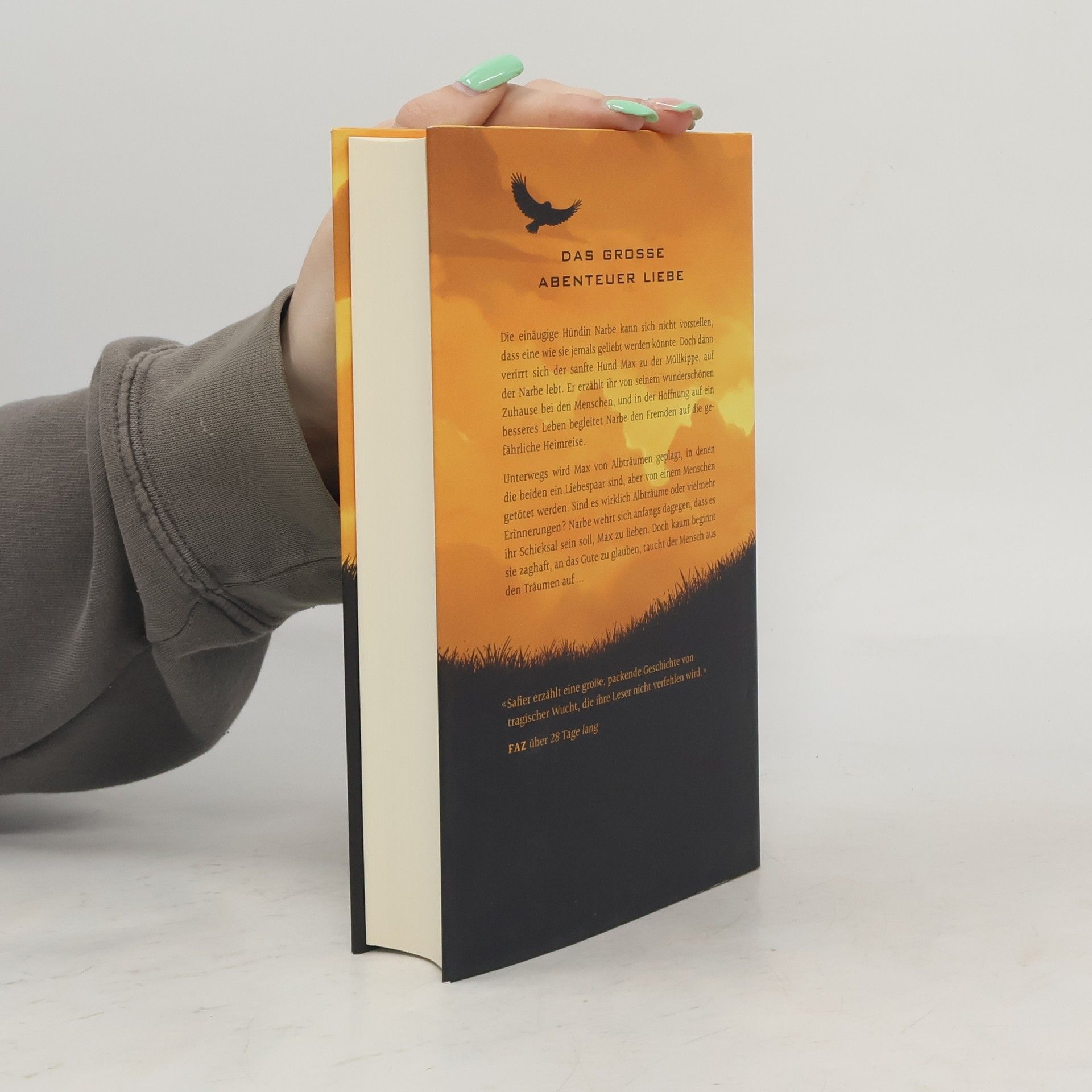Das große Abenteuer Liebe Die einäugige Hündin Narbe kann sich nicht vorstellen, dass eine wie sie jemals geliebt werden könnte. Doch dann verirrt sich der sanfte Hund Max zu der Müllkippe, auf der Narbe lebt. Er erzählt ihr von seinem wunderschönen Zuhause bei den Menschen und in der Hoffnung auf ein besseres Leben begleitet Narbe den Fremden auf die gefährliche Heimreise. Unterwegs wird Max von Alpträumen geplagt, in denen die beiden ein Liebespaar sind, aber von einem Menschen getötet werden. Aber sind es wirklich Alpträume oder vielmehr Erinnerungen? Narbe wehrt sich anfangs dagegen, dass es ihr Schicksal sein soll, Max zu lieben. Doch kaum beginnt sie zaghaft an das Gute zu glauben, taucht der Mensch aus den Träumen auf...