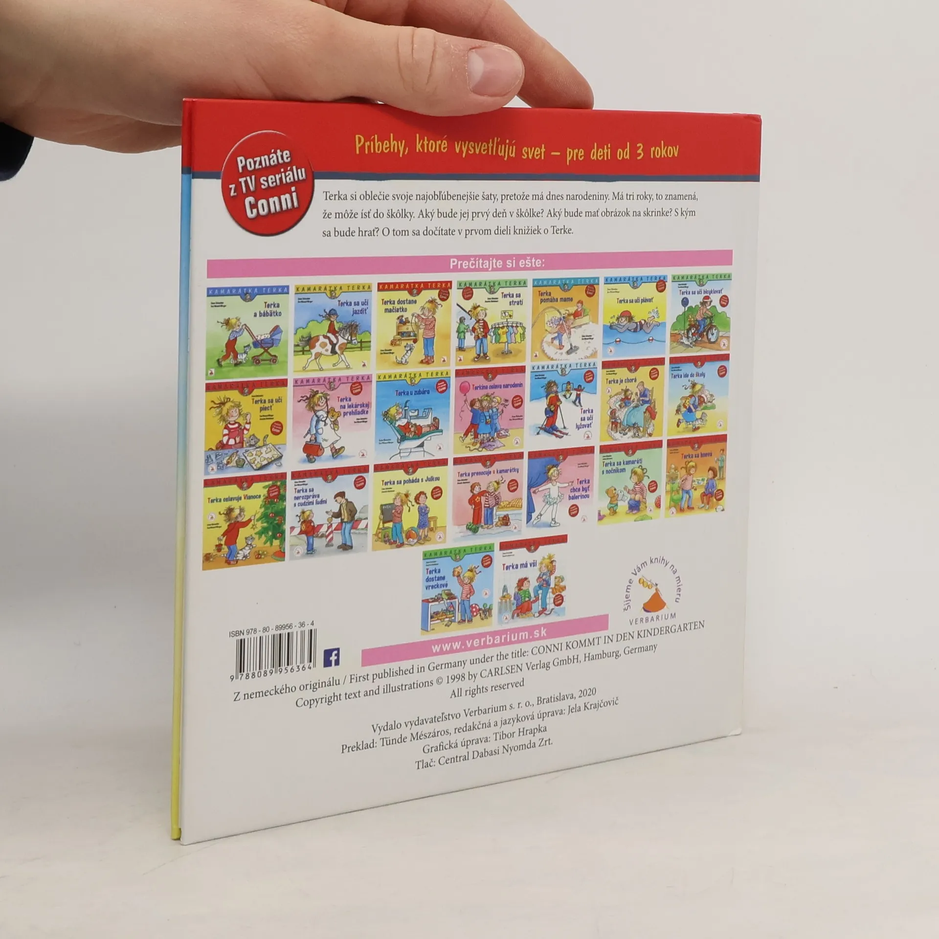 Terka si oblečie svoje najobľúbenejšie šaty, pretože má dnes narodeniny. Má tri roky, to znamená, že môže ísť do škôlky. Aký bude jej prvý deň v škôlke? Aký bude mať obrázok na skrinke? S kým sa bude hrať? O tom sa dočítate v prvom dieli knižiek o Terke.