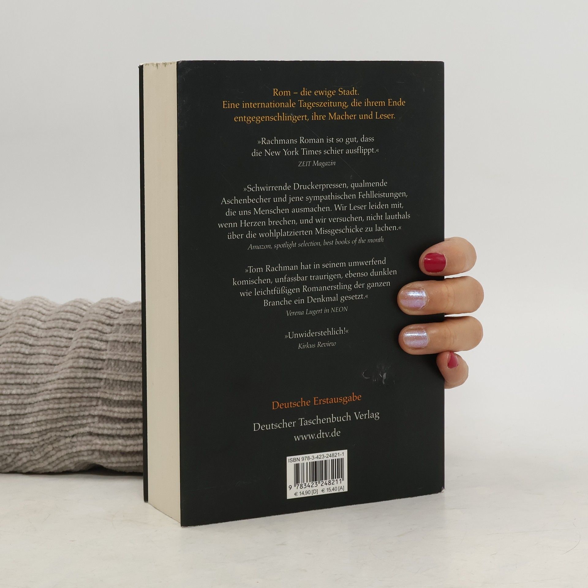 Ein zutiefst menschlicher Roman über eine liebenswerte Truppe von Lebens- und Überlebenskünstlern Was, wenn ein Zeitungserbe seinem Basset mehr Interesse entgegenbringt als dem Schicksal seines Blattes? Was wird aus der unglückseligen Ruby (alleinstehend, immer auf der Suche nach dem Mann fürs Leben)? Aus Ed, der gefeuert wird und sich an der zuständigen Sachbearbeiterin (alleinerziehend, drei Kinder und keine Zeit für die Liebe) rächt? Aus der Chefredakteurin Kathleen (verheiratet mit einem Weichei und verliebt in einen anderen)? Und aus Lloyd, der, einsam wie ein Straßenhund, aus Not eine Story erfindet und auffliegt? Rachmans wunderbar hintergründiger, ernst-komischer Gesellschaftsroman über eine internationale Tageszeitung und ihre Macher in Rom ist von bezwingender Leichtigkeit und ein Panoptikum unserer Zeit. »Dieser Roman von Tom Rachman ist so gut, dass ich ihn zweimal lesen musste – einfach, um zu begreifen, wie er das hingekriegt hat, wie einer, der gerade mal fünfunddreißig ist, ein derartiges Gespür für Menschen und ihre Schwächen haben kann.« Christopher Buckley, The New York Times Book Review