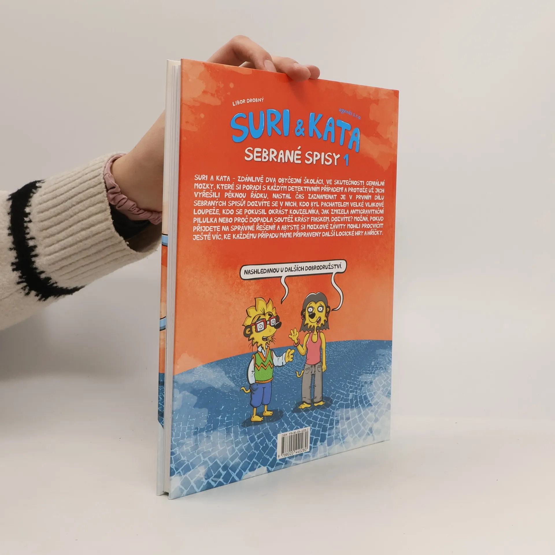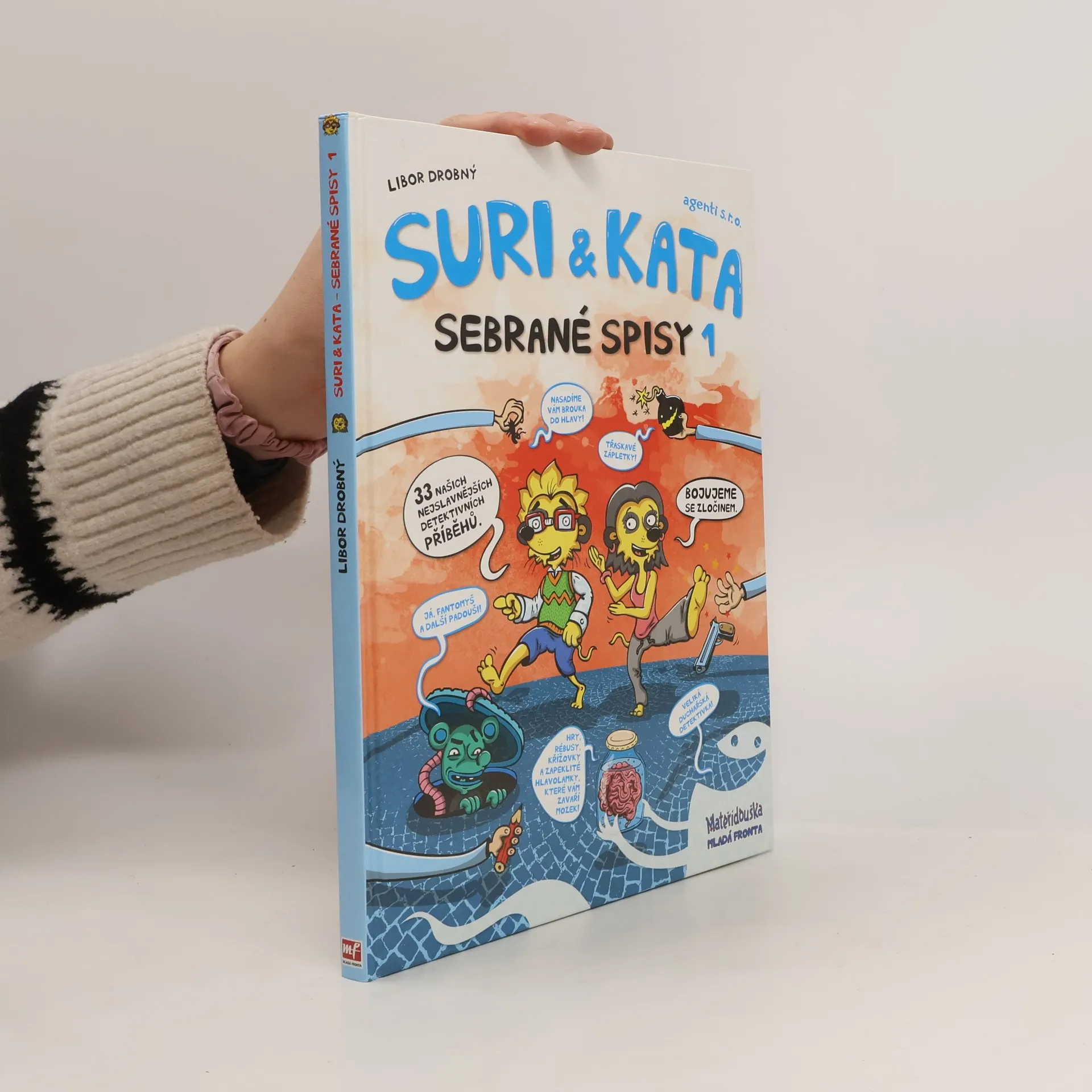 Suri a Kata – zdánlivě dva obyčejní školáci, ale ve skutečnosti geniální mozky se stoprocentní úspěšností v řešení i těch nejzapeklitějších detektivních příkladů! Ze své tajné podzemní základny vybavené tou nejmodernější technikou vyrážejí do terénu, aby zbavili svět zlodějů a podvodníků. A protože už vyřešili pěknou řádku zločinů, nastal čas vydat knižně první část jejich detektivních zážitků v komiksové podobě. V Sebraných spisech se dozvíte například, kdo byl pachatelem velké vlakové loupeže, kdo se pokusil okrást kouzelníka, jak zmizela antigravitační pilulka nebo proč dopadla soutěž krásy fiaskem. Dozvíte? Možná ano, pokud přijdete na správné řešení! A abyste si své mozkové závity mohli procvičit ještě víc, ke každému případu máme připraveny další logické hry a hříčky.