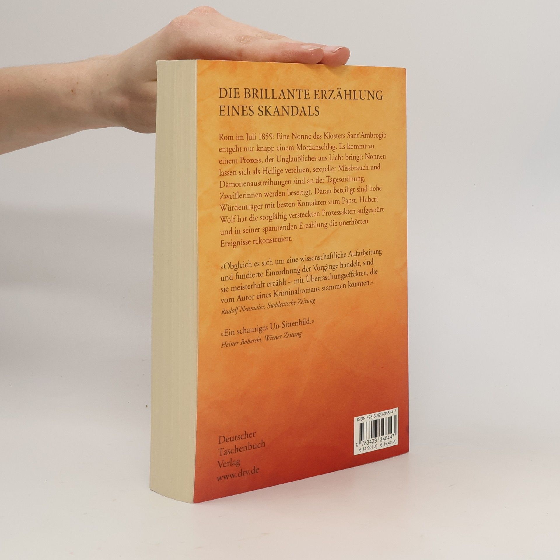 Die brillante Erzählung eines Skandals Rom im Juli 1859: Eine Nonne im Kloster Sant’Ambrogio entgeht nur knapp einem Mordanschlag. Sie bringt einen Inquisitionsprozess ins Rollen, in dessen Verlauf Unglaubliches zu Tage tritt: Nonnen verfallen eigentümlichen ekstatischen Zuständen, sexueller Missbrauch von Novizinnen durch Mitschwestern und Beichtväter, Dämonenaustreibungen und angebliche Wunder sind in diesem Kloster an der Tagesordnung, Zweiflerinnen werden zum Schweigen gezwungen oder für immer beseitigt. Beteiligt daran sind nicht nur machthungrige, von religiösen Wahnvorstellungen beherrschte Nonnen und Priester, sondern auch ein Netzwerk von einflussreichen Theologen und Kardinälen mit besten Kontakten zum Papst. Die Akten des Prozesses verschwanden für alle Ewigkeit in den vatikanischen Archiven. Doch Hubert Wolf hat sie unter thematisch völlig unpassenden Dokumenten aufgespürt und die unerhörten Ereignisse erstmals genau rekonstruiert.