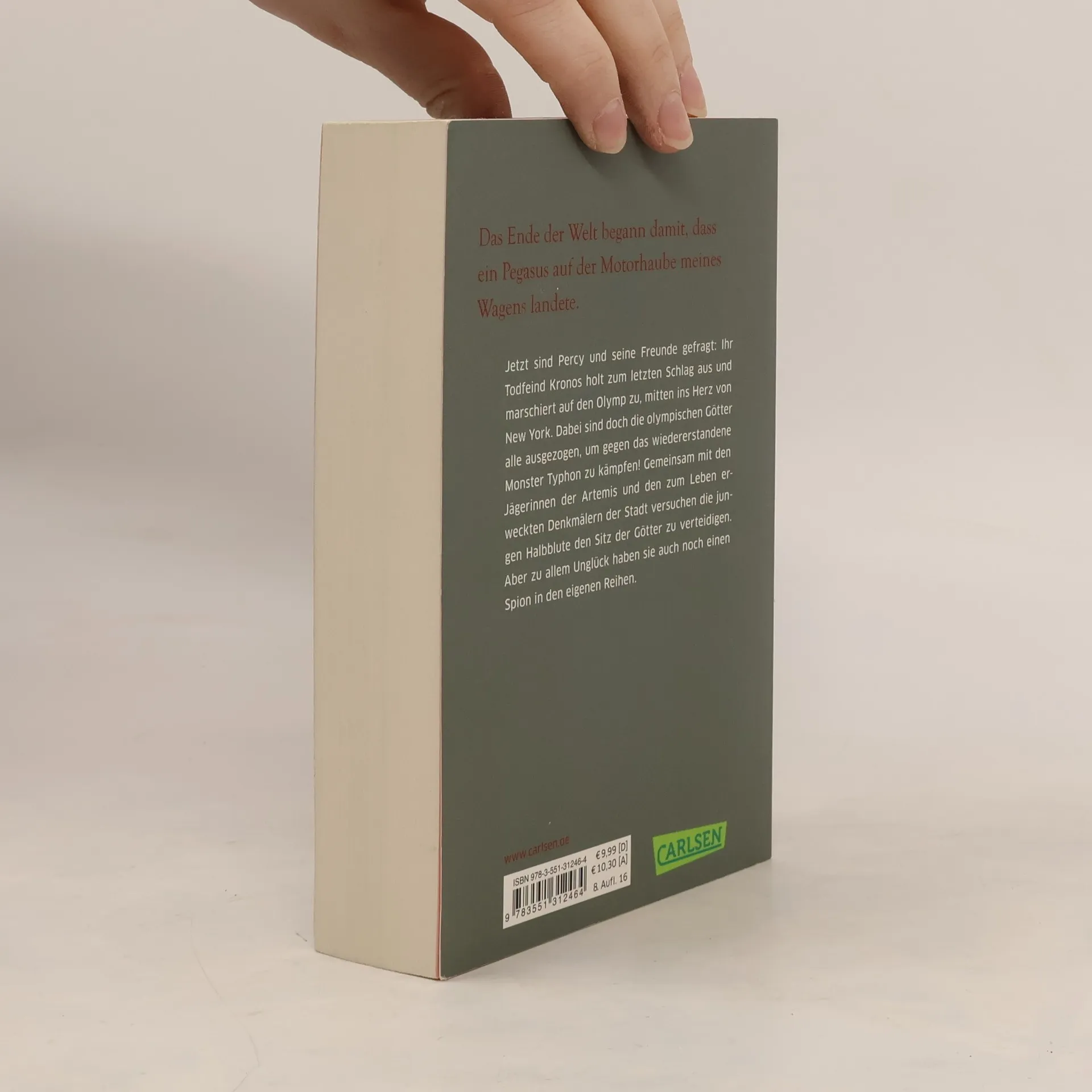 Action, Witz und die letzte Entscheidung! Titanen gegen die Götter des Olymp! Die ultimative Schlacht gegen Kronos steht bevor – mitten im Herzen von New York! Ausgerechnet jetzt sind alle olympischen Götter ausgezogen, um gegen das wiederauferstandene Monster Typhon zu kämpfen! Jetzt liegt es an Percy und seinen Freunden, den Sitz er Götter zu verteidigen. Er muss sich der Prophezeiung stellen und eine Entscheidung treffen, die weitreichende Konsequenzen hat und sein Leben für immer verändern wird. Die Jugendbuch-Bestsellerserie mit nachtragenden Ungeheuern und schrulligen Göttern Als Percy Jackson erfährt, dass er ein Halbgott ist und es die Kreaturen aus der griechischen Mythologie wirklich gibt, verändert das alles. Von nun an stehen ihm und seinen Freunden allerlei Monster, göttliche Streitigkeiten und epische Quests bevor. Gespickt mit Heldentum, Chaos und Freundschaft ist die sechsteilige Fantasy-Reihe rund um den Halbgott Percy Jackson inzwischen millionenfach verkauft. Der Mix aus Spannung, Witz und Mythologie begeistert Jung und Alt aus mehr als 40 Ländern und ist die bekannteste Serie von Rick Riordan. ***Griechische Götter in der Gegenwart: chaotisch-wilde Fantasy für junge Leser*innen ab 12 Jahren und für alle Fans der griechischen Mythologie***