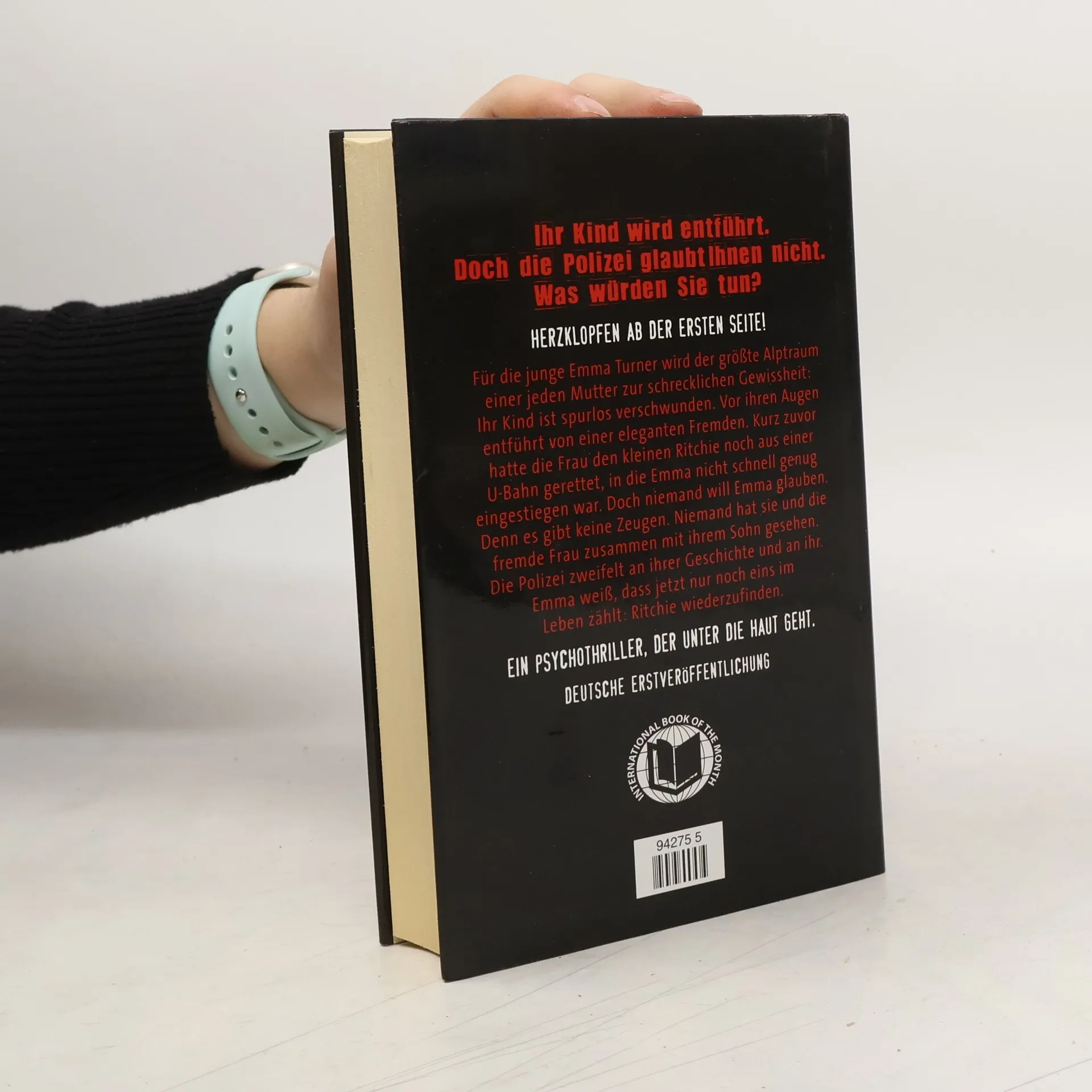 Herzklopfen ab der ersten Seite! Für Emma Turner wird der Alptraum einer jeden Mutter wahr: Beim Einsteigen in die U-Bahn wird sie von ihrem kleinen Sohn Ritchie getrennt, die Türen schließen sich, und Emma bleibt allein am Bahnsteig zurück. Wie durch ein Wunder findet sie Ritchie an der nächsten Station wieder, denn eine hilfsbereite Fremde hat sich ihm angenommen. Diese stellt sich als Antonia vor und überredet Emma, auf den Schreck noch etwas trinken zu gehen. Doch als Emma im Café Antonia für einen Moment aus den Augen lässt, ist diese verschwunden - und hat Ritchie mitgenommen. Ein Psychothriller, in dem der Alptraum einer jeden Mutter wahr wird. Dieses Buch geht unter die Haut.