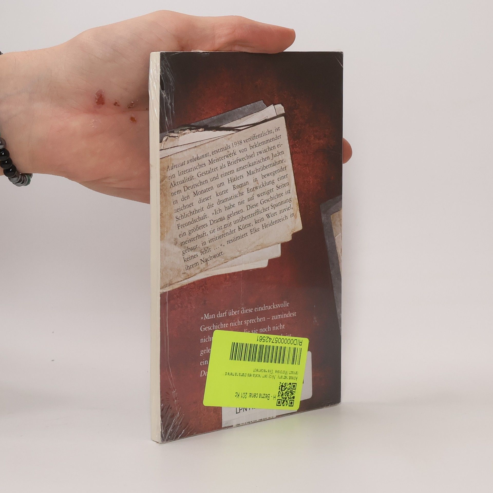 Der Deutsche Martin Schulse und der amerikanische Jude Max Eisenstein betreiben in den USA eine gut gehende Kunstgalerie. 1932 entscheidet sich Schulse, mit seiner Familie nach Deutschland zurückzukehren. Eisenstein betreibt die gemeinsame Galerie in San Francisco weiter. Die beiden Männer bleiben in Kontakt und tauschen sich in ihren Briefen über Berufliches und Privates aus. Zunächst scheint die Freundschaft nicht unter der räumlichen Trennung zu leiden. Doch Schulse, der die politischen Entwicklungen in Deutschland anfangs noch kritisch betrachtete, entwickelt sich nach und nach zum bekennenden Nationalsozialisten. Adressat unbekannt, 1938 erstmals veröffentlicht, ist ein Buch von beklemmender Aktualität. Gestaltet als Briefwechsel zwischen einem Deutschen und einem amerikanischen Juden in den Monaten um Hitlers Machtübernahme, schildert dieses Meisterwerk die dramatische Entwicklung einer Freundschaft und die Geschichte einer bitterbösen Rache. »Ich habe nie auf weniger Seiten ein größeres Drama gelesen. Diese Geschichte ist meisterhaft, sie ist mit unübertrefflicher Spannung gebaut, in irritierender Kürze, kein Wort zuviel, keines fehlt ... Nie wurde das zersetzende Gift des Nationalsozialismus eindringlicher beschrieben«, resümiert Elke Heidenreich in ihrem Nachwort.