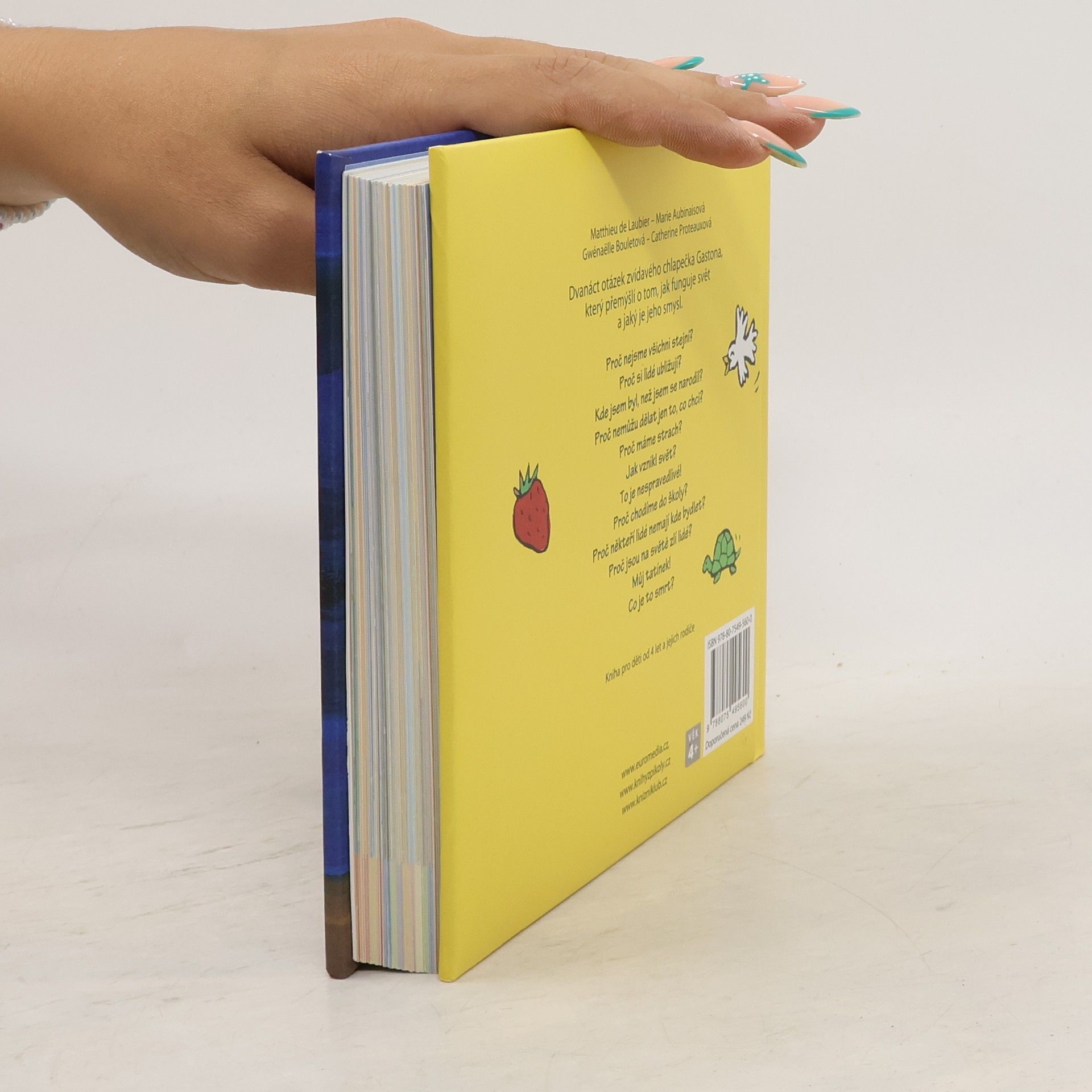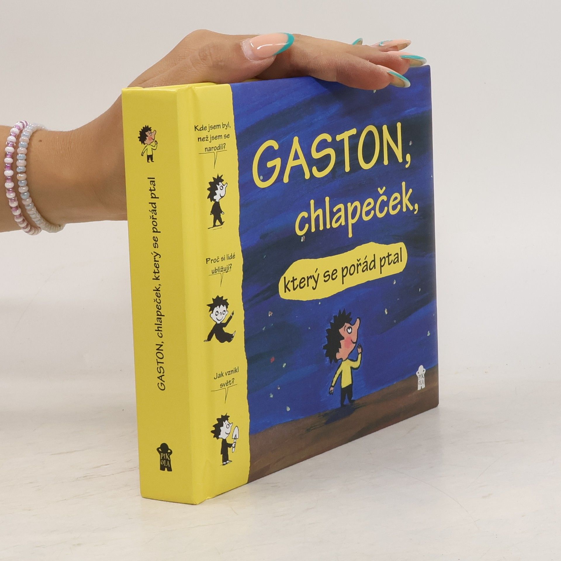 Půvabná knížka plná dynamických ilustrací představuje dvanáct velkých otázek lidské existence, které děti zajímají, když začínají poznávat svět kolem sebe. Gastonovo přemýšlení o okolním světě umožní dětem a jejich rodičům vést nad knížkou vlastní důvěrné rozhovory, a kapitolky pro rodiče v závěru usnadňují dospělým, aby v dialogu se svým dítětem nalezli slova, která uklidní, pomohou a přinesou pokrok ve vývoji.